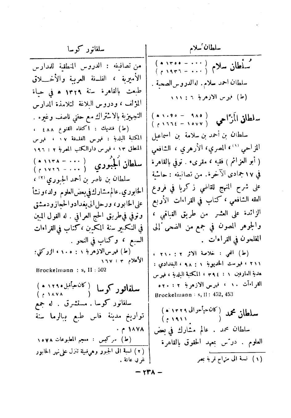 (ط) فهرس الازهرية 1: 105، الزركلي: الاعلام 3: 167 502: Brockelmann: s , II سلفاتور كوسا (كان حيا قبل 1295 هـ) (1878 م) سلفاتور؟ ؟ كوسا.