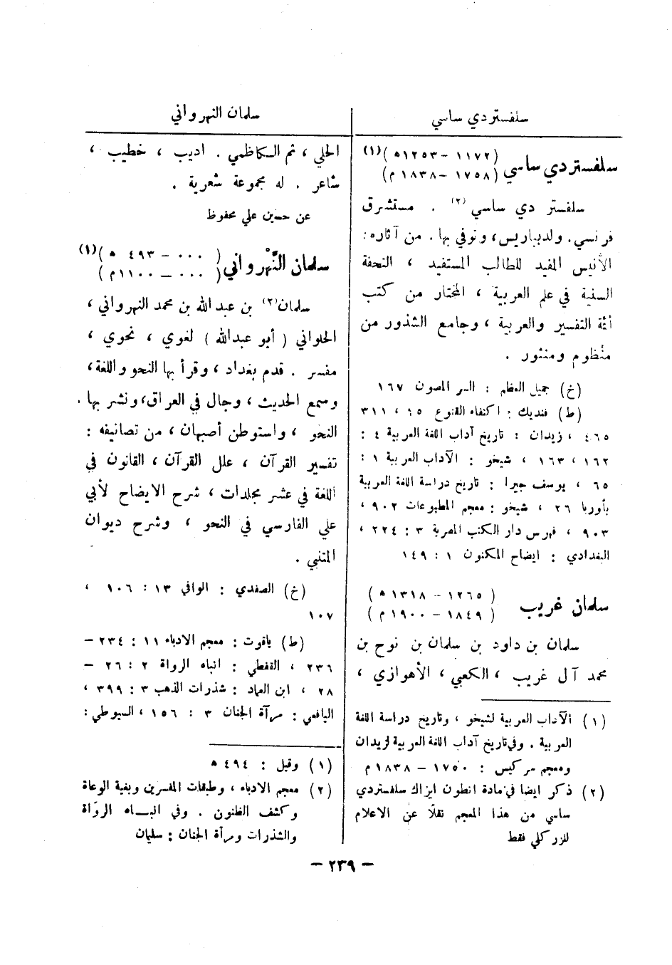 وفي تاريخ آداب اللغة العربية لزيدان ومعجم سركيس: 1750 - 1838 م (2) ذكر ايضا في مادة انطون ايزاك سلفستردي ساسي من هذا المعجم نقلا عن الاعلام للزركلي فقط