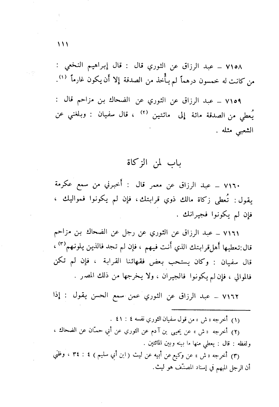 ٧١٥٩ - عَنِ الثَّوْرِيِّ، عَنِ الضَّحَّاكِ بْنِ مُزَاحِمٍ قَالَ: «يُعْطِي مِنَ الصَّدَقَةِ مِائَةً إِلَى مِائَتَيْنِ»، قَالَ سُفْيَانُ: وَبَلَغَنِي، عَنِ الشَّعْبِيِّ مِثْلُهُ