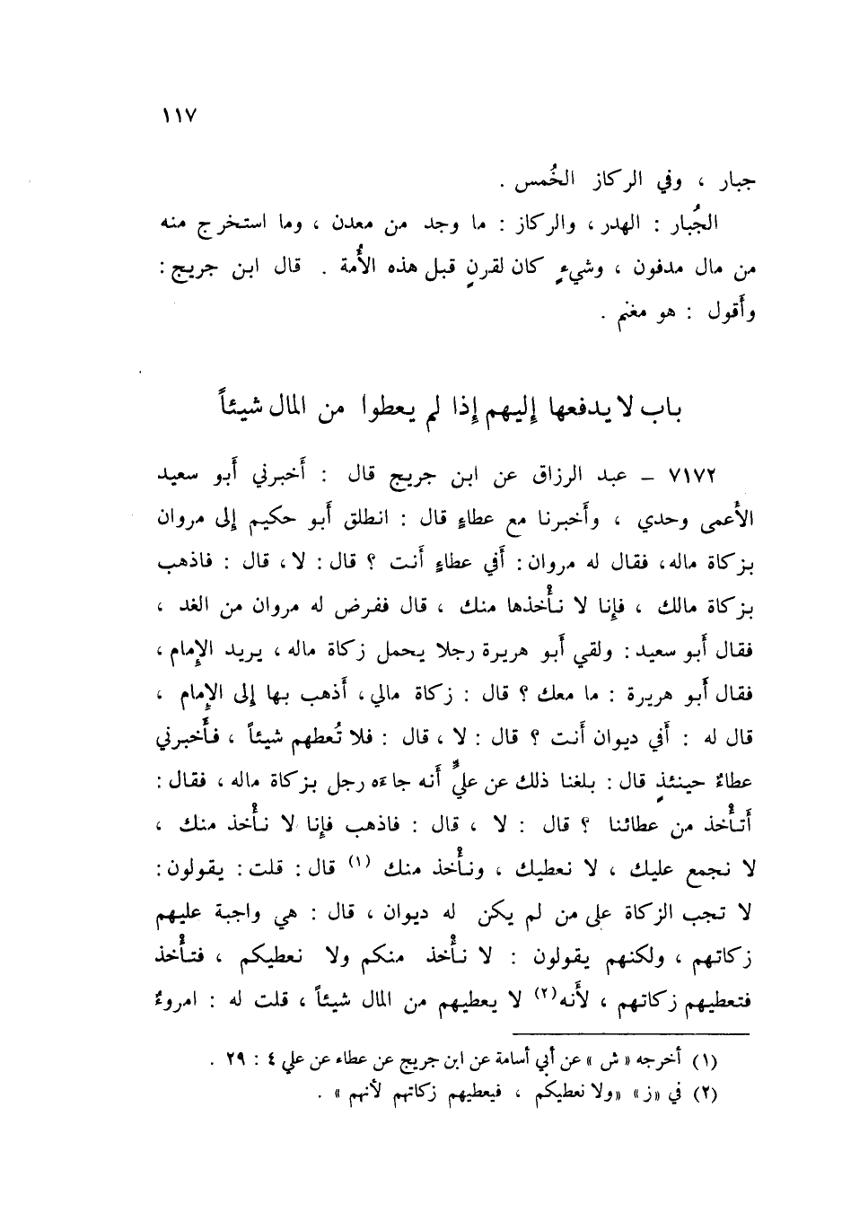٧١٨٢ - عَنِ ابْنِ جُرَيْجٍ قَالَ: أَخْبَرَنِي أَبُو سَعِيدٍ الْأَعْمَى وَحْدِي، وَأَخْبَرَنَا مَعَ عَطَاءٍ قَالَ: انْطَلَقَ أَبُو حَكِيمٍ إِلَى مَرْوَانَ بِزَكَاةِ مَالِهِ، فَقَالَ لَهُ مَرْوَانُ: «أَفِي عَطَاءٍ أَنْتَ؟» قَالَ: لَا قَالَ: «فَاذْهَبْ بِزَكَاةِ مَالِكَ؛ فَإِنَّا لَا نَأْخُذُهَا مِنْكَ» قَالَ: فَفَرَضَ لَهُ مَرْوَانُ مِنَ الْغَدِ