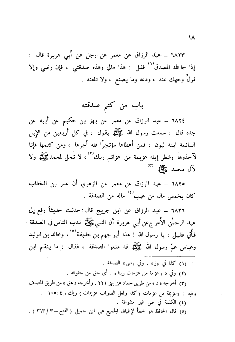٦٨٢٦ - عَنِ ابْنِ جُرَيْجٍ قَالَ: حُدِّثْتُ حَدِيثًا رُفِعَ إِلَى عَبْدِ الرَّحْمَنِ الْأَعْرَجِ، عَنْ أَبِي هُرَيْرَةَ، أَنَّ النَّبِيَّ صَلَّى اللهُ عَلَيْهِ وَسَلَّمَ نَدَّبَ النَّاسَ فِي الصَّدَقَةِ فَأُتِيَ، فَقِيلَ: يَا رَسُولَ اللَّهِ هَذَا أَبُو جَهْمِ بْنُ حُذَيفَةَ وَخَالِدُ بْنُ الْوَلِيدِ وَعَبَّاسٌ عَمُّ رَسُولِ اللَّهِ صَلَّى اللهُ عَلَيْهِ وَسَلَّمَ قَدْ مَنَعُوا الصَّدَقَةَ، فَقَالَ: «مَا يَنْقِمُ ابْنُ جَمِيلٍ مِنَّا إِلَا أَنَّهُ كَانَ فَقِيرًا، فَأَغْنَاهُ اللَّهُ وَرَسُولًهُ، وَأَمَّا خَالِدُ بْنُ الْوَلِيدِ فَحَبَسَ أَدْرَاعَهُ، وَاعْتَدَّهُ فِي سَبِيلِ اللَّهِ، وَأَمَّا عَبَّاسٌ عَمُّ رَسُولِ اللَّهِ صَلَّى اللهُ عَلَيْهِ وَسَلَّمَ فَهِيَ عَلَيْهِ وَمِثْلُهَا مَعَهَا»