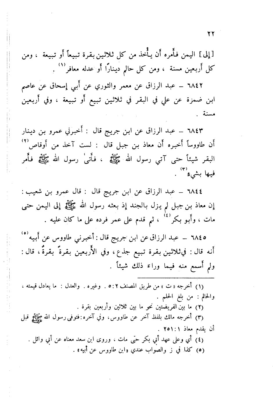 ٦٨٤٦ - عَنِ ابْنِ جُرَيْجٍ قَالَ: أَخْبَرَنِي عَمْرُو بْنُ دِينَارٍ قَالَ: «كَانَ عُمَّالُ ابْنِ الزُّبَيْرِ، وَابْنُ عَوْفٍ، وَعَمَّالُهُ يَأْخُذُونَ مِنْ كُلِّ خَمْسِينَ بَقَرَةً بَقَرَةً، وَمِنْ ثَمَانِينَ بَقَرَتَيْنِ، ثُمَّ إِذَا كَثُرَتْ فَفِي كُلِّ خَمْسِينَ بَقَرَةً»، قُلْتُ: أَيُّ بَقَرَةٌ قَالَ: «كَذَلِكَ»