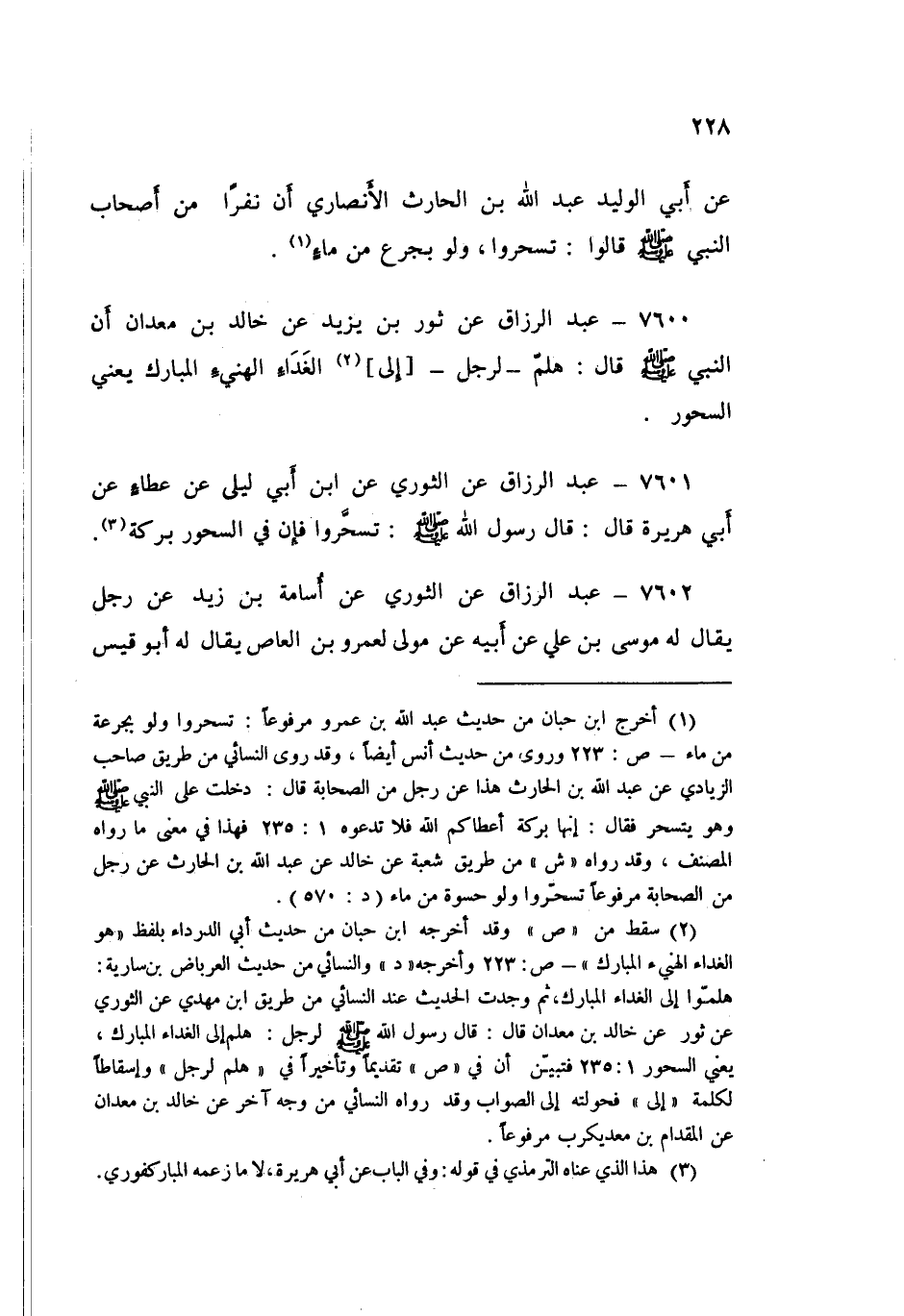 ٧٦٠١ - عَنِ الثَّوْرِيِّ، عَنِ ابْنِ أَبِي لَيْلَى، عَنْ عَطَاءٍ، عَنْ أَبِي هُرَيْرَةَ قَالَ: قَالَ رَسُولُ اللَّهِ صَلَّى اللهُ عَلَيْهِ وَسَلَّمَ: «تَسَحَّرُوا فَإِنَّ فِي السُّحُورِ بَرَكَةً»
