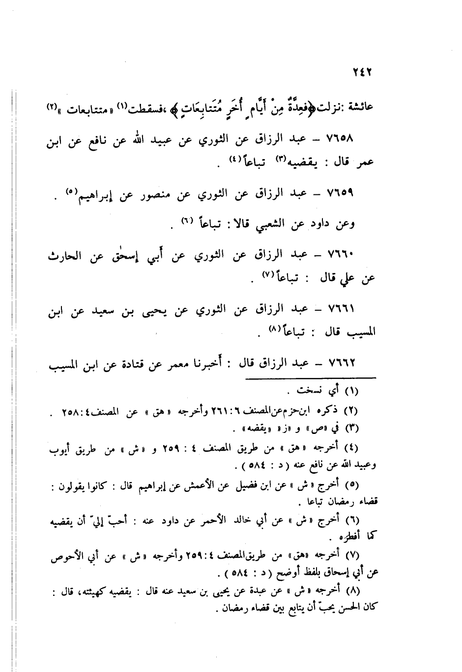 ٧٦٦١ - عَنِ الثَّوْرِيِّ، عَنْ يَحْيَى بْنِ سَعِيدٍ، عَنِ ابْنِ الْمُسَيِّبِ قَالَ: «تِبَاعًا»