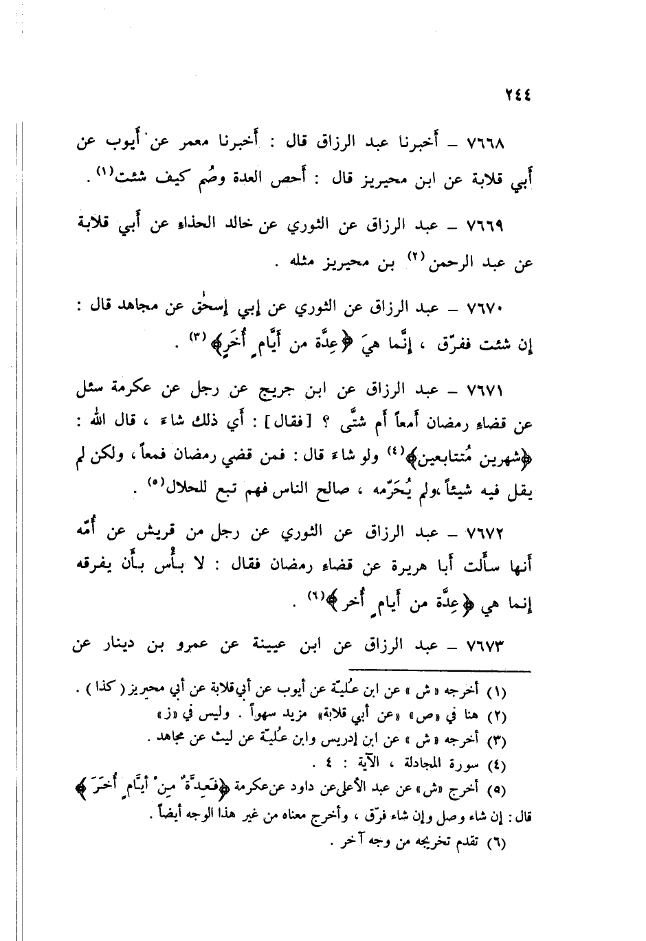 ٧٦٧٠ - عَنِ الثَّوْرِيِّ، عَنْ أَبِي إِسْحَاقَ، عَنْ مُجَاهِدٍ قَالَ: «إِنْ شِئْتَ فَفَرِّقْ إِنَّمَا هِيَ عِدَّةٌ مِنْ أَيَّامٍ أُخَرَ»