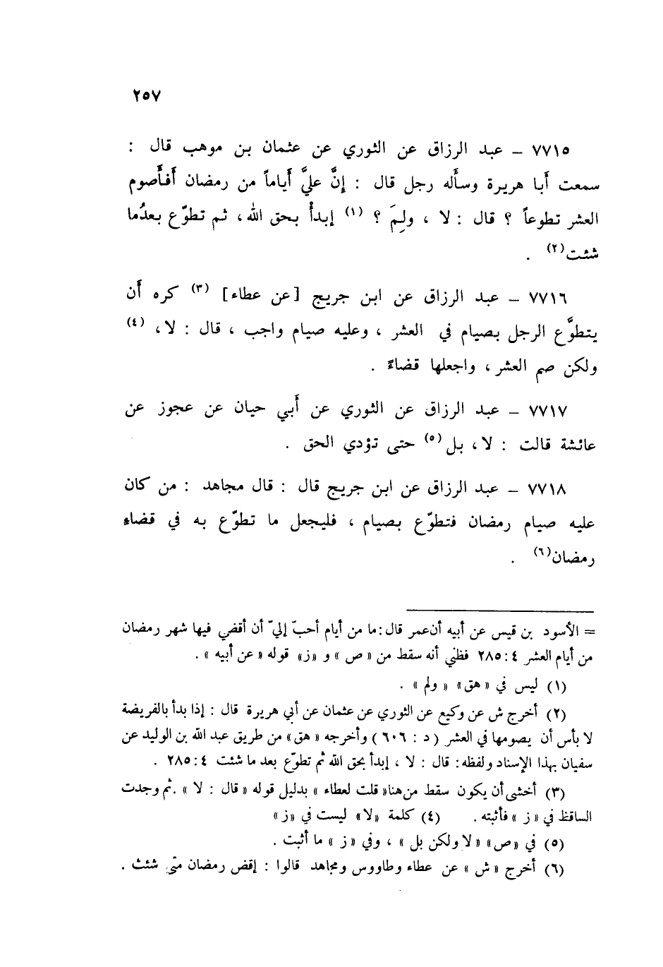 ٧٧١٦ - عَنِ ابْنِ جُرَيْجٍ قَالَ: عَنْ عَطَاءٍ، كُرِهَ أَنْ يَتَطَوَّعَ الرَّجُلُ بِصِيَامٍ فِي الْعَشْرِ، وَعَلَيْهِ صِيَامٌ وَاجِبٌ قَالَ: «لَا، وَلَكِنْ صُمِ الْعَشْرَ، وَاجْعَلْهَا قَضَاءً»