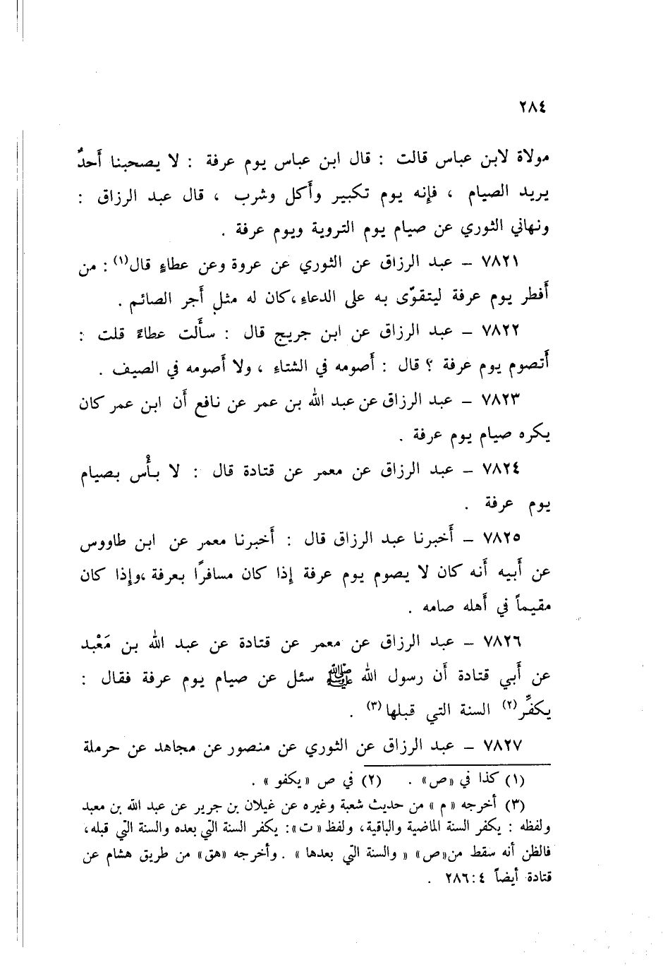 ٧٨٢٥ - عَبْدُ الرَّزَّاقِ قَالَ: أَخْبَرَنَا مَعْمَرٌ، عَنِ ابْنِ طَاوُسٍ، عَنْ أَبِيهِ، أَنَّهُ: «كَانَ لَا يَصُومُ يَوْمَ عَرَفَةَ إِذَا كَانَ مُسَافِرًا بِعَرَفَةَ، وَإِذَا كَانَ مُقِيمًا فِي أَهْلِهِ صَامَهُ»