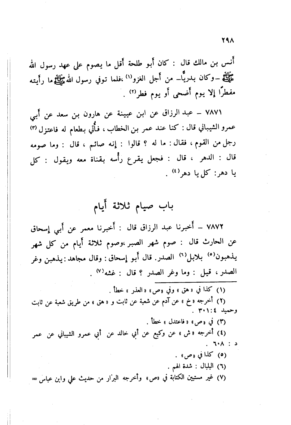 ٧٨٧٢ - عَبْدُ الرَّزَّاقِ، أَخْبَرَنَا مَعْمَرٌ، عَنْ أَبِي إِسْحَاقَ، عَنِ الْحَارِثِ قَالَ: «صَوْمُ شَهْرِ الصَّبْرِ، وَصَوْمُ ثَلَاثَةِ أَيَّامٍ مِنْ كُلِّ شَهْرٍ يُذْهِبُونَ بَلَابِلَ الصَّدْرِ»، قَالَ أَبُو إِسْحَاقَ: وَقَالَ مُجَاهِدٌ: «يُذْهِبْنَ وَغَرَ الصَّدْرِ»، قِيلَ: وَمَا وَغَرُ الصَّدْرِ؟ قَالَ: «غِشُّهُ»
