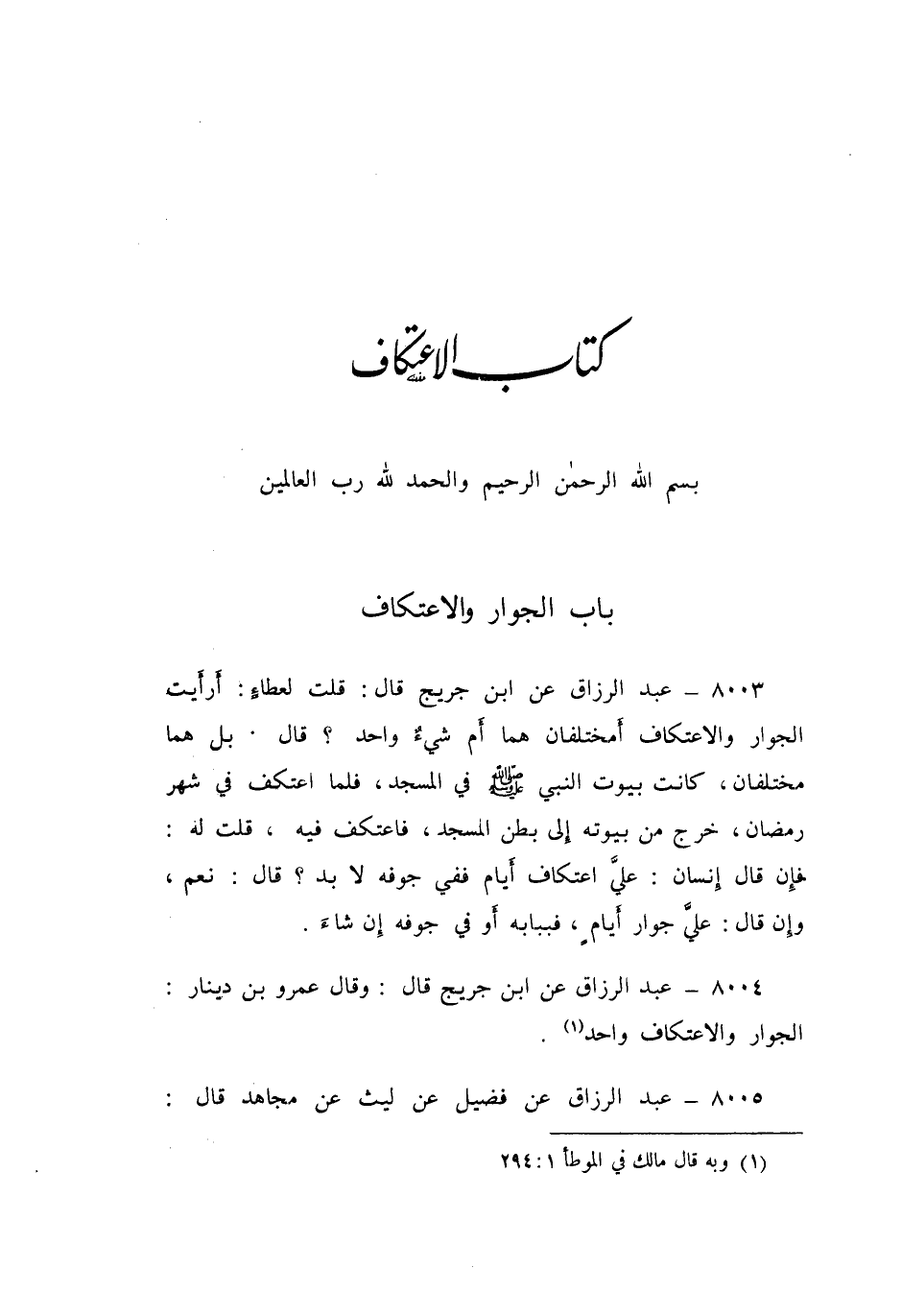 ٨٠٠٤ - عَنِ ابْنِ جُرَيْجٍ قَالَ: وَقَالَ عَمْرُو بْنُ دِينَارٍ: «الْجِوَارُ وَالِاعْتِكَافُ وَاحِدٌ»