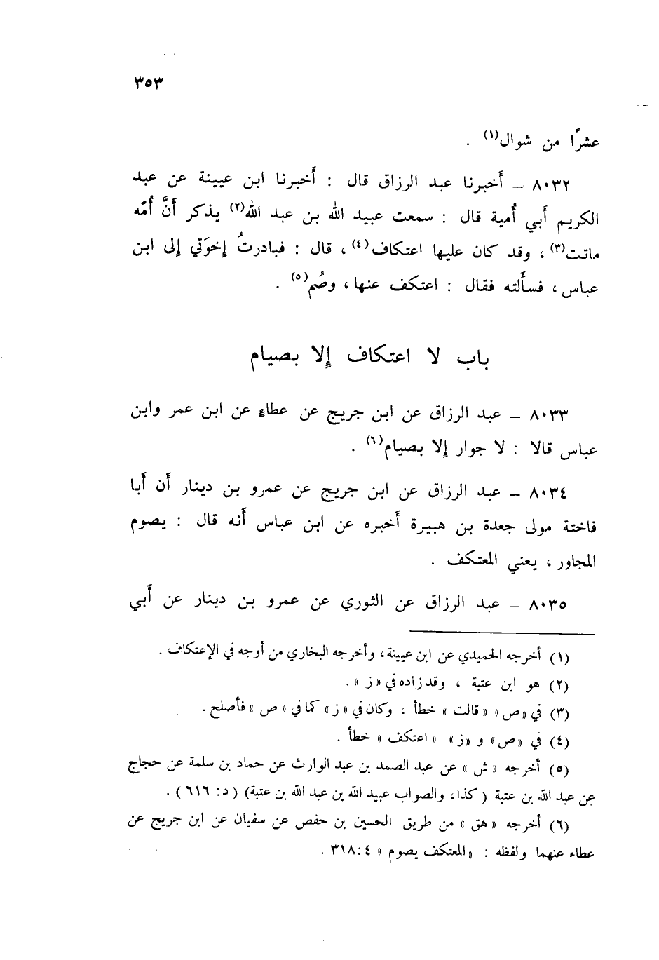 ٨٠٣٤ - عَنِ ابْنِ جُرَيْجٍ، عَنْ عَمْرِو بْنِ دِينَارٍ، أَنَّ أَبَا فَاخِتَةَ، مَوْلَى جَعْدَةَ بْنِ هُبَيْرَةَ، أَخْبَرَهُ، عَنِ ابْنِ عَبَّاسٍ، أَنَّهُ قَالَ: «يَصُومُ الْمُجَاوِرُ، يَعْنِي الْمُعْتَكِفَ»