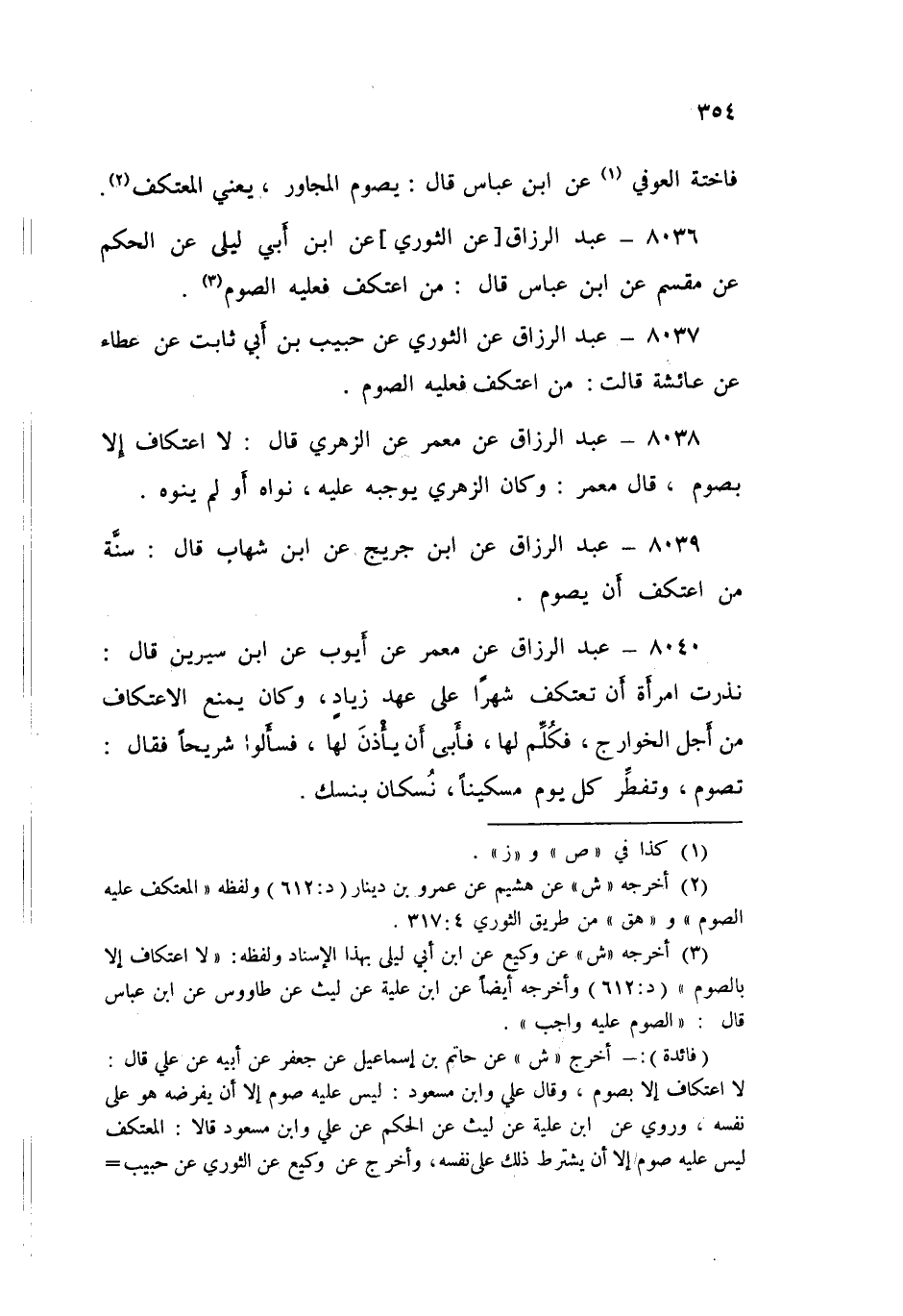٨٠٣٩ - عَنِ ابْنِ جُرَيْجٍ، عَنِ ابْنِ شِهَابٍ قَالَ: «سُنَّةُ مَنِ اعْتَكَفَ أَنْ يَصُومَ»