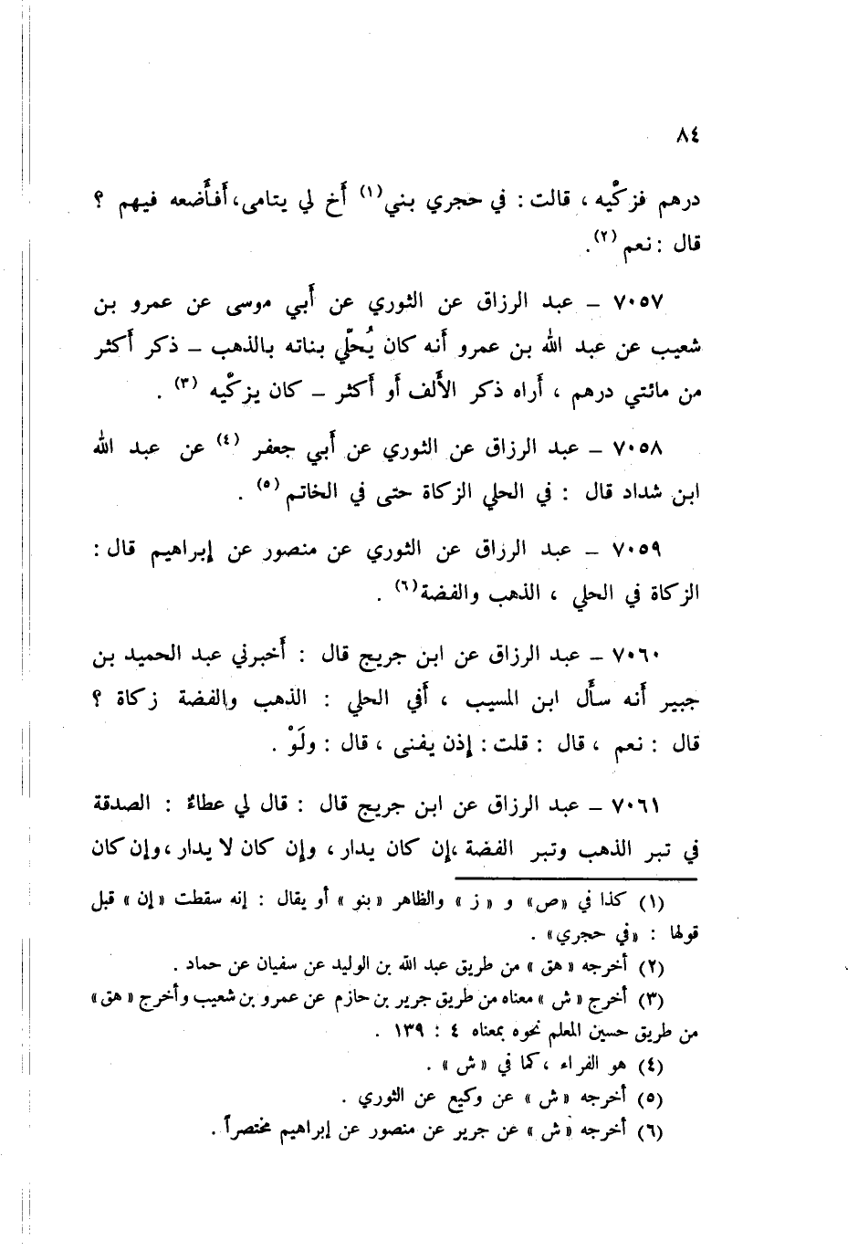 ٧٠٥٩ - عَنِ الثَّوْرِيِّ، عَنْ مَنْصُورٍ، عَنْ إِبْرَاهِيمَ قَالَ: «الزَّكَاةُ فِي الْحُلِيِّ الذَّهَبِ وَالْفِضَّةِ»