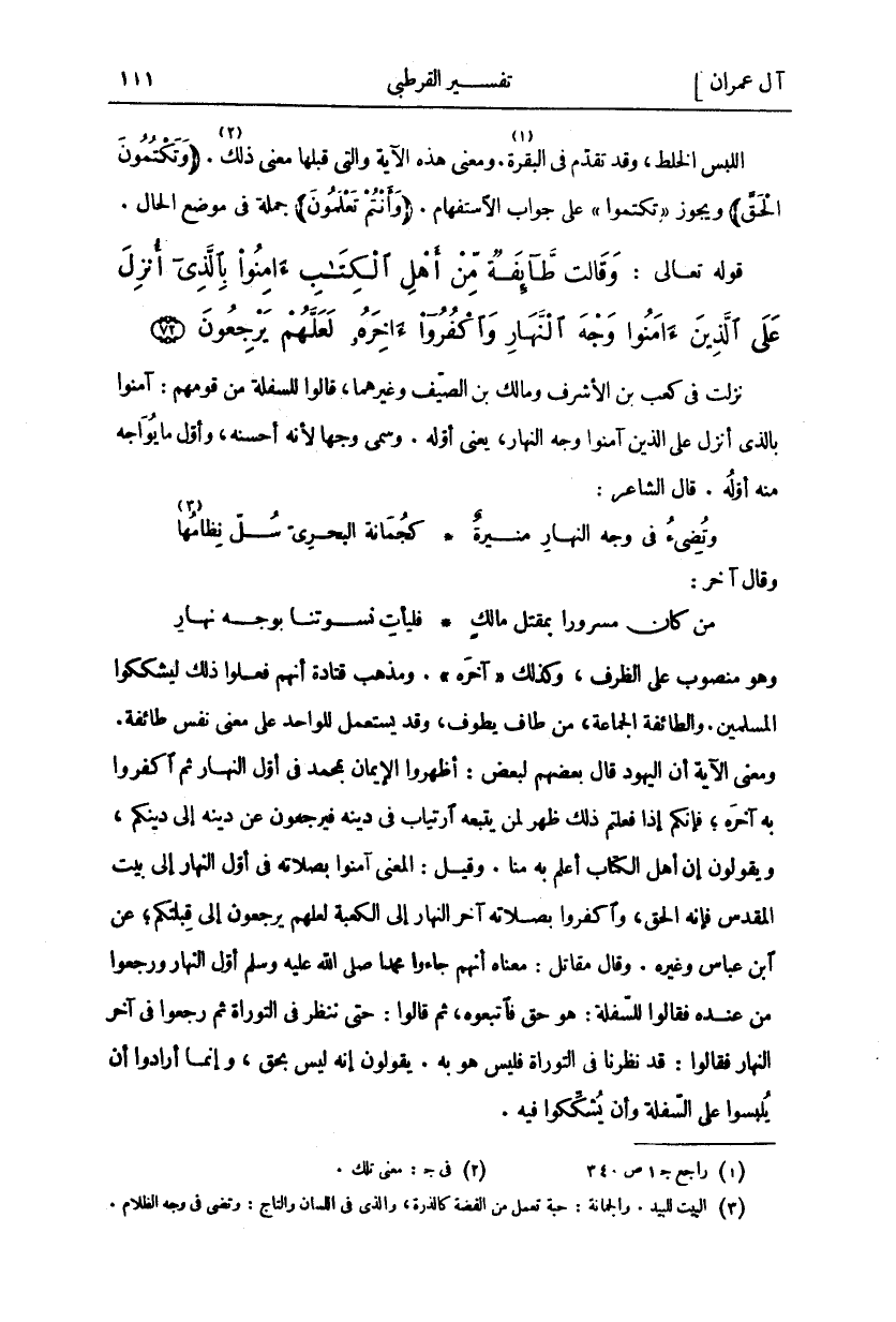 وَقالَتْ طائِفَةٌ مِنْ أَهْلِ الْكِتابِ آمِنُوا بِالَّذِي أُنْزِلَ عَلَى الَّذِينَ آمَنُوا وَجْهَ النَّهارِ وَاكْفُرُوا آخِرَهُ لَعَلَّهُمْ يَرْجِعُونَ (٧٢)