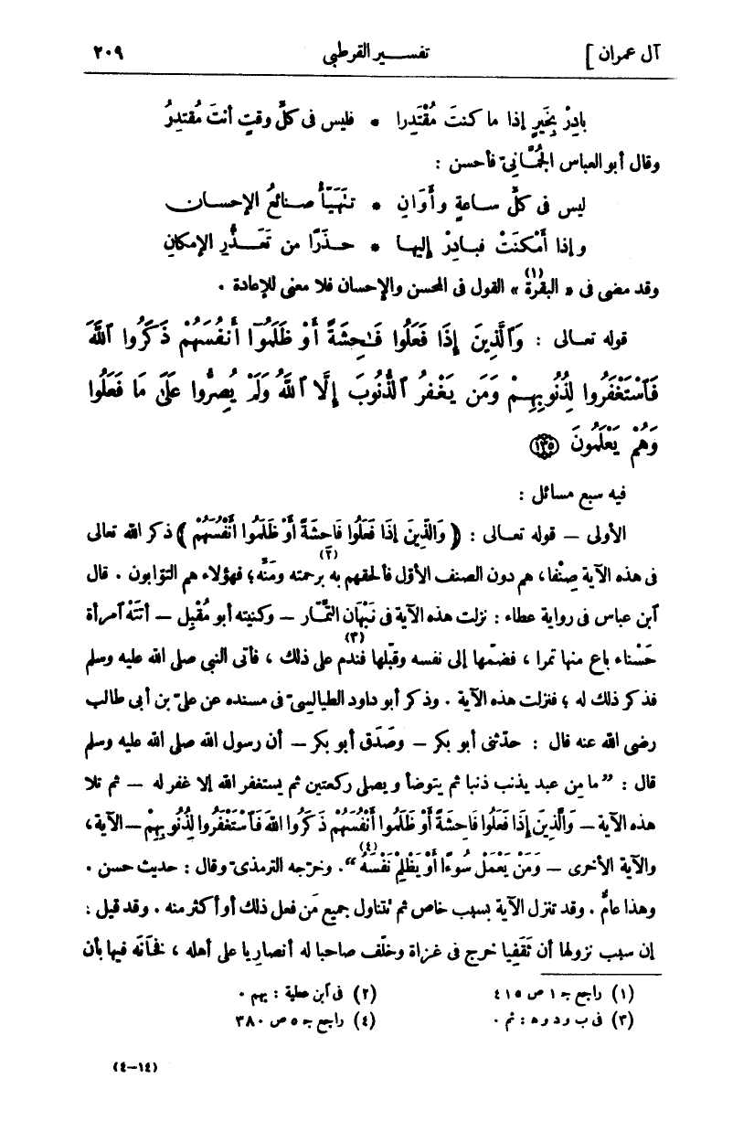 وَالَّذِينَ إِذا فَعَلُوا فاحِشَةً أَوْ ظَلَمُوا أَنْفُسَهُمْ ذَكَرُوا اللَّهَ فَاسْتَغْفَرُوا لِذُنُوبِهِمْ وَمَنْ يَغْفِرُ الذُّنُوبَ إِلاَّ اللَّهُ وَلَمْ يُصِرُّوا عَلى مَا فَعَلُوا وَهُمْ يَعْلَمُونَ (١٣٥)