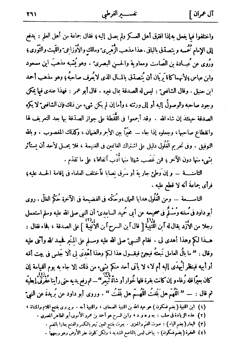 (١). ابن اللتبية (بضم فسكون) هو عبد الله بن اللتبية الصحابي، واللتبية أمة. ويروى بفتح اللام والمثناة.