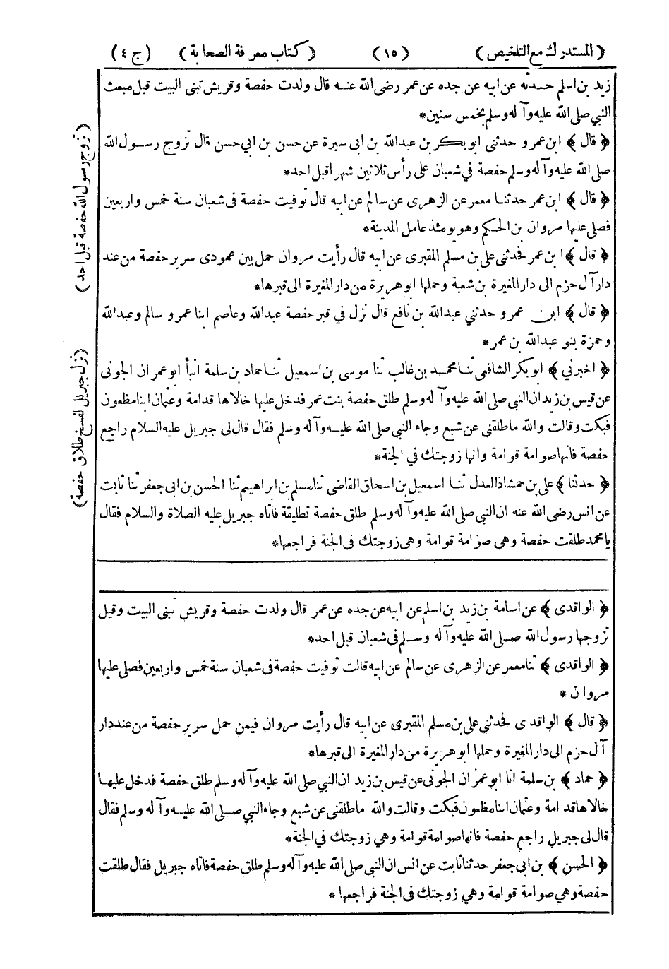 قَالَ ابْنُ عُمَرَ : وَحَدَّثَنِي أَبُو بَكْرِ بْنُ عَبْدِ اللهِ بْنِ أَبِي سَبْرَةَ ، عَنْ حَسَنِ بْنِ أَبِي حَسَنٍ ، قَالَ : تَزَوَّجَ رَسُولُ اللهِ صَلَّى اللَّهُ عَلَيْهِ وَسَلَّمَ حَفْصَةَ فِي شَعْبَانَ عَلَى رَأْسِ ثَلاَثِينَ شَهْرًا قَبْلَ أُحُدٍ.