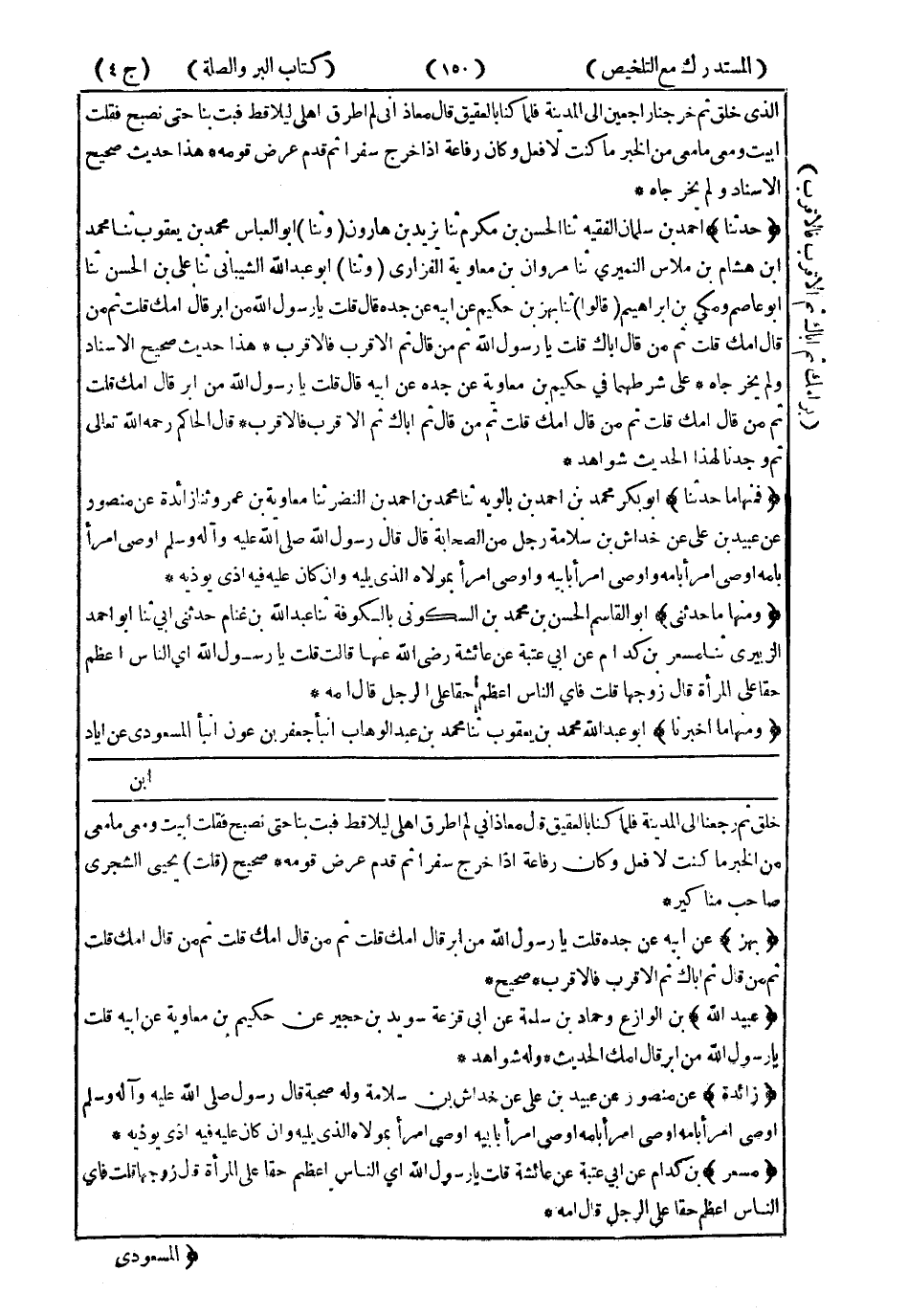 هَذَا حَدِيثٌ صَحِيحُ الإِسْنَادِ وَلَمْ يُخَرِّجَاهُ عَلَى شَرْطِهِمَا فِي حَكِيمِ بْنِ مُعَاوِيَةَ عَنْ جَدِّهِ عَنْ أَبِيهِ قَالَ : قُلْتُ : يَا رَسُولَ اللهِ مَنْ أَبَرُّ ؟ قَالَ : أُمَّكَ قُلْتُ : ثُمَّ مَنْ ؟ قَالَ : أُمَّكَ قُلْتُ : ثُمَّ مَنْ ؟ قَالَ : أُمَّكَ قُلْتُ : ثُمَّ مَنْ ؟ قَالَ : ثُمَّ أَبَاكَ ثُمَّ الأَقْرَبَ فَالأَقْرَبَ.