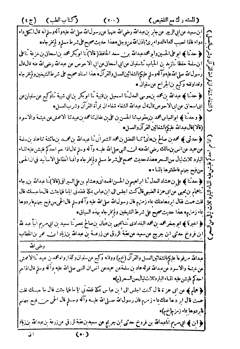 7435- حَدَّثَنَا أَبُو عَلِيٍّ الْحُسَيْنُ ، وَأَبُو مُحَمَّدٍ عَبْدُ اللهِ بْنُ سَعْدٍ الْحَافِظُ ، قَالاَ : حَدَّثَنَا أَبُو بَكْرٍ مُحَمَّدُ بْنُ إِسْحَاقَ بْنِ خُزَيْمَةَ ، حَدَّثَنَا عَلِيُّ بْنُ سَلَمَةَ ، حِفْظًا ، حَدَّثَنَا زَيْدُ بْنُ الْحُبَابِ ، حَدَّثَنَا سُفْيَانُ ، عَنْ أَبِي إِسْحَاقَ ، عَنْ أَبِي الأَحْوَصِ ، عَنْ عَبْدِ اللهِ ، رَضِيَ اللَّهُ عَنْهُ ، قَالَ : قَالَ رَسُولُ اللهِ صَلَّى اللَّهُ عَلَيْهِ وَسَلَّمَ : عَلَيْكُمْ بِالشِّفَائَيْنِ : الْعَسَلُ وَالْقُرْآنُ.