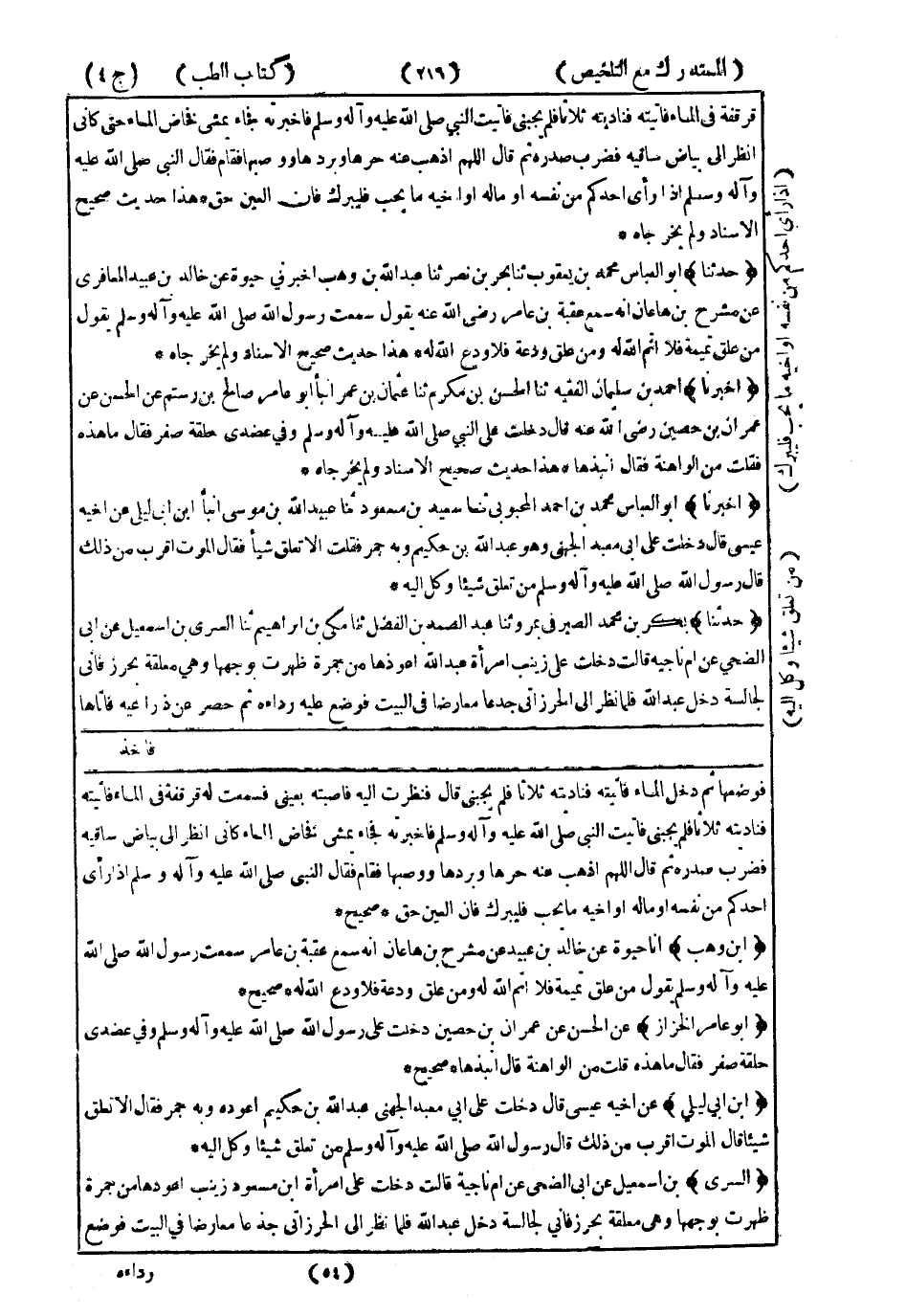 7504- حَدَّثَنَا بَكْرُ بْنُ مُحَمَّدٍ الصَّيْرَفِيُّ ، بِمَرْوَ ، حَدَّثَنَا عَبْدُ الصَّمَدِ بْنُ الْفَضْلِ ، حَدَّثَنَا مَكِّيُّ بْنُ إِبْرَاهِيمَ ، حَدَّثَنَا السَّرِيُّ بْنُ إِسْمَاعِيلَ ، عَنْ أَبِي الضُّحَى ، عَنْ أُمِّ نَاجِيَةَ ، قَالَتْ : دَخَلْتُ عَلَى زَيْنَبَ امْرَأَةِ عَبْدِ اللهِ أَعُوذُهَا مِنْ جَمْرَةٍ ظَهَرَتْ بِوَجْهِهَا وَهِيَ مُعَلَّقَةٌ بِحِرْزٍ فَإِنِّي لَجَالِسَةٌ دَخَلَ عَبْدُ اللهِ ، فَلَمَّا نَظَرَ إِلَى الْحِرْزِ أَتَى جِدْعًا مُعَارِضًا فِي الْبَيْتِ فَوَضَعَ عَلَيْهِ رِدَاءَهُ ، ثُمَّ حَصَرَ عَنْ ذِرَاعَيْهِ فَأَتَاهَا فَأَخَذَ بِالْحِرْزِ فَجَذَبَهَا حَتَّى كَادَ وَجْهُهَا أَنْ يَقَعَ فِي الأَرْضِ فَانْقَطَعَ ثُمَّ خَرَجَ مِنَ الْبَيْتِ فَقَالَ : لَقَدْ أَصْبَحَ آلُ عَبْدِ اللهِ أَغْنِيَاءَ عَنِ الشِّرْكِ ، ثُمَّ خَرَجَ فَرَمَى بِهَا خَلْفَ الْجِدَارِ ثُمَّ قَالَ : يَا زَيْنَبُ أَعِنْدِي تُعَلِّقِينَ إِنِّي سَمِعْتُ رَسُولَ اللهِ صَلَّى اللَّهُ عَلَيْهِ وَسَلَّمَ يَقُولُ : نَهَى عَنِ الرُّقَى وَالتَّمَائِمِ وَالتَّوْلِيَةِ فَقَالَتْ أُمُّ نَاجِيَةَ : يَا أَبَا عَبْدِ الرَّحْمَنِ أَمَّا الرُّقَى وَالتَّمَائِمُ فَقَدْ عَرَفْنَا فَمَا التَّوْلِيَةُ ؟ قَالَ : التَّوْلِيَةُ مَا يُهَيِّجُ النِّسَاءَ.