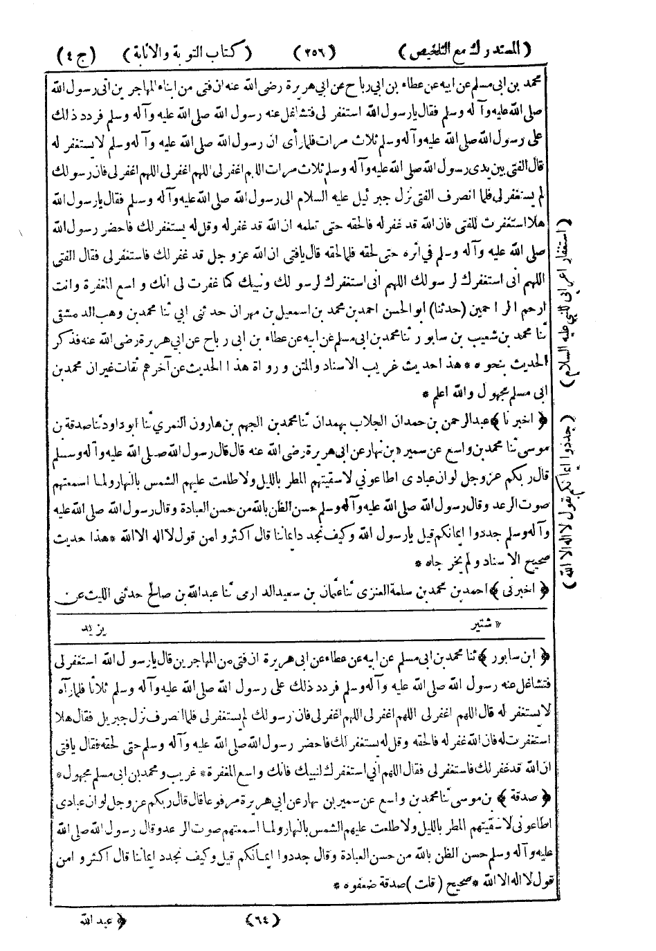 أَنَّ فَتًى مِنْ أَبْنَاءِ الْمُهَاجِرِينَ أَتَى رَسُولَ اللهِ صَلَّى اللَّهُ عَلَيْهِ وَسَلَّمَ فَقَالَ : يَا رَسُولَ اللهِ ، اسْتَغْفِرْ لِي ، فَتَشَاغَلَ عَنْهُ رَسُولُ اللهِ صَلَّى اللَّهُ عَلَيْهِ وَسَلَّمَ ، فَرَدَّدَ ذَلِكَ عَلَى رَسُولِ اللهِ صَلَّى اللَّهُ عَلَيْهِ وَسَلَّمَ ثَلاَثَ مَرَّاتٍ ، فَلَمَّا رَأَى أَنَّ رَسُولَ اللهِ صَلَّى اللَّهُ عَلَيْهِ وَسَلَّمَ لاَ يَسْتَغْفِرُ لَهُ ، قَالَ الْفَتَى بَيْنَ يَدَيْ رَسُولِ اللهِ صَلَّى اللَّهُ عَلَيْهِ وَسَلَّمَ ثَلاَثَ مَرَّاتٍ : اللَّهُمَّ اغْفِرْ لِي ، اللَّهُمَّ اغْفِرْ لِي ، اللَّهُمَّ اغْفِرْ لِي ، فَإِنَّ رَسُولَكَ لَمْ يَسْتَغْفِرْ لِي . فَلَمَّا انْصَرَفَ الْفَتَى نَزَلَ جِبْرِيلُ عَلَيْهِ السَّلاَمُ إِلَى رَسُولِ اللهِ صَلَّى اللَّهُ عَلَيْهِ وَسَلَّمَ فَقَالَ : يَا رَسُولَ اللهِ ، هَلاَ اسْتَغْفَرْتَ لِلْفَتَى فَإِنَّ اللَّهَ قَدْ غَفَرَ لَهُ ، فَالْحَقْهُ حَتَّى تُعْلِمَهُ أَنَّ اللَّهَ قَدْ غَفَرَ لَهُ وَقُلْ لَهُ : يَسْتَغْفِرُ لَكَ . فَأَحْضَرَ رَسُولُ اللهِ صَلَّى اللَّهُ عَلَيْهِ وَسَلَّمَ فِي أَثَرِهِ حَتَّى لَحِقَهُ ، فَلَمَّا لَحِقَهُ قَالَ : يَا فَتًى ، إِنَّ اللَّهَ عَزَّ وَجَلَّ قَدْ غَفَرَ لَكَ فَاسْتَغْفِرْ لِي فَقَالَ الْفَتَى : اللَّهُمَّ إِنِّي أَسْتَغْفِرُكَ لِرَسُولِكَ ، اللَّهُمَّ إِنِّي أَسْتَغْفِرُكَ لِرَسُولِكَ وَنَبِيِّكَ كَمَا غَفَرْتَ لِي إِنَّكَ وَاسِعُ الْمَغْفِرَةِ وَأَنْتَ أَرْحَمُ الرَّاحِمِينَ.