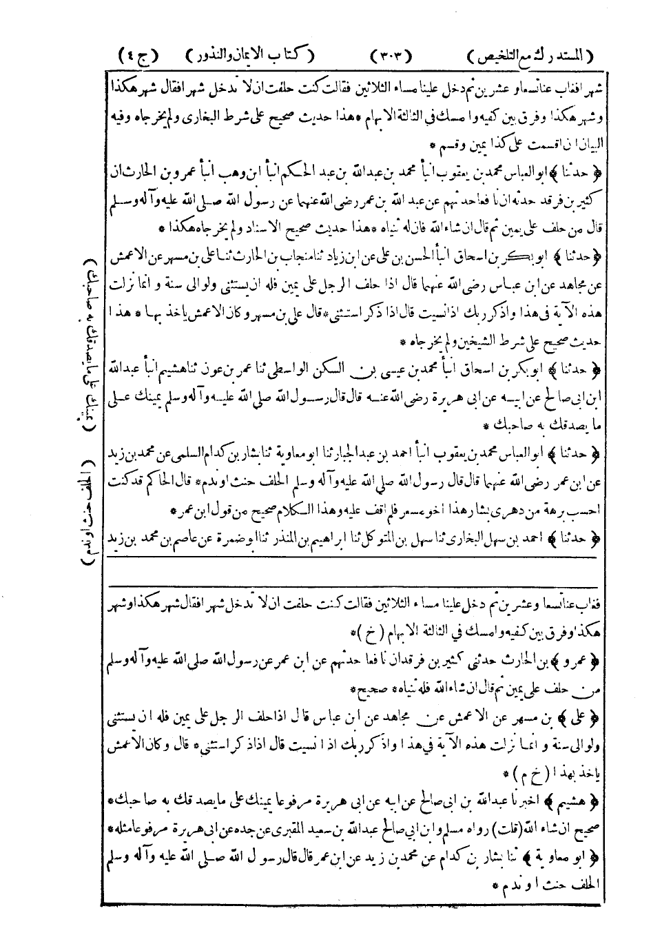 هَذَا حَدِيثٌ صَحِيحٌ عَلَى شَرْطِ الشَّيْخَيْنِ وَلَمْ يُخَرِّجَاهُ.