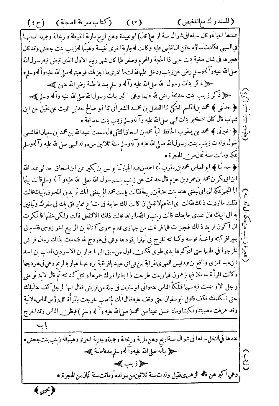 ذِكْرُ زَيْنَبَ بِنْتِ خَدِيجَةَ رَضِيَ اللَّهُ عَنْهُمَا وَهِيَ أَكْبَرُ بَنَاتِ رَسُولِ اللهِ صَلَّى اللَّهُ عَلَيْهِ وَسَلَّمَ