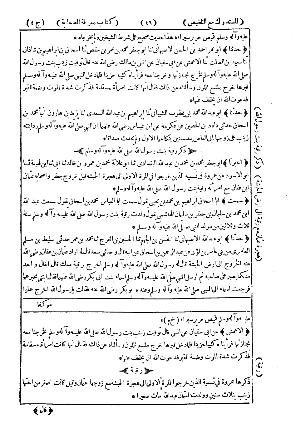 6848- سَمِعْتُ أَبَا إِسْحَاقَ إِبْرَاهِيمَ بْنَ مُحَمَّدِ بْنِ يَحْيَى ، يَقُولُ : سَمِعْتُ أَبَا الْعَبَّاسِ مُحَمَّدَ بْنَ إِسْحَاقَ ، يَقُولُ : سَمِعْتُ عَبْدَ اللهِ بْنَ مُحَمَّدِ بْنِ سُلَيْمَانَ بْنِ جَعْفَرِ بْنِ سُلَيْمَانَ الْهَاشِمِيَّ ، يَقُولُ : وُلِدَتْ رُقَيَّةُ بِنْتُ رَسُولِ اللهِ صَلَّى اللَّهُ عَلَيْهِ وَسَلَّمَ سَنَةَ ثَلاَثٍ وَثَلاَثِينَ مِنْ مَوْلِدِ النَّبِيِّ صَلَّى اللَّهُ عَلَيْهِ وَسَلَّمَ.
