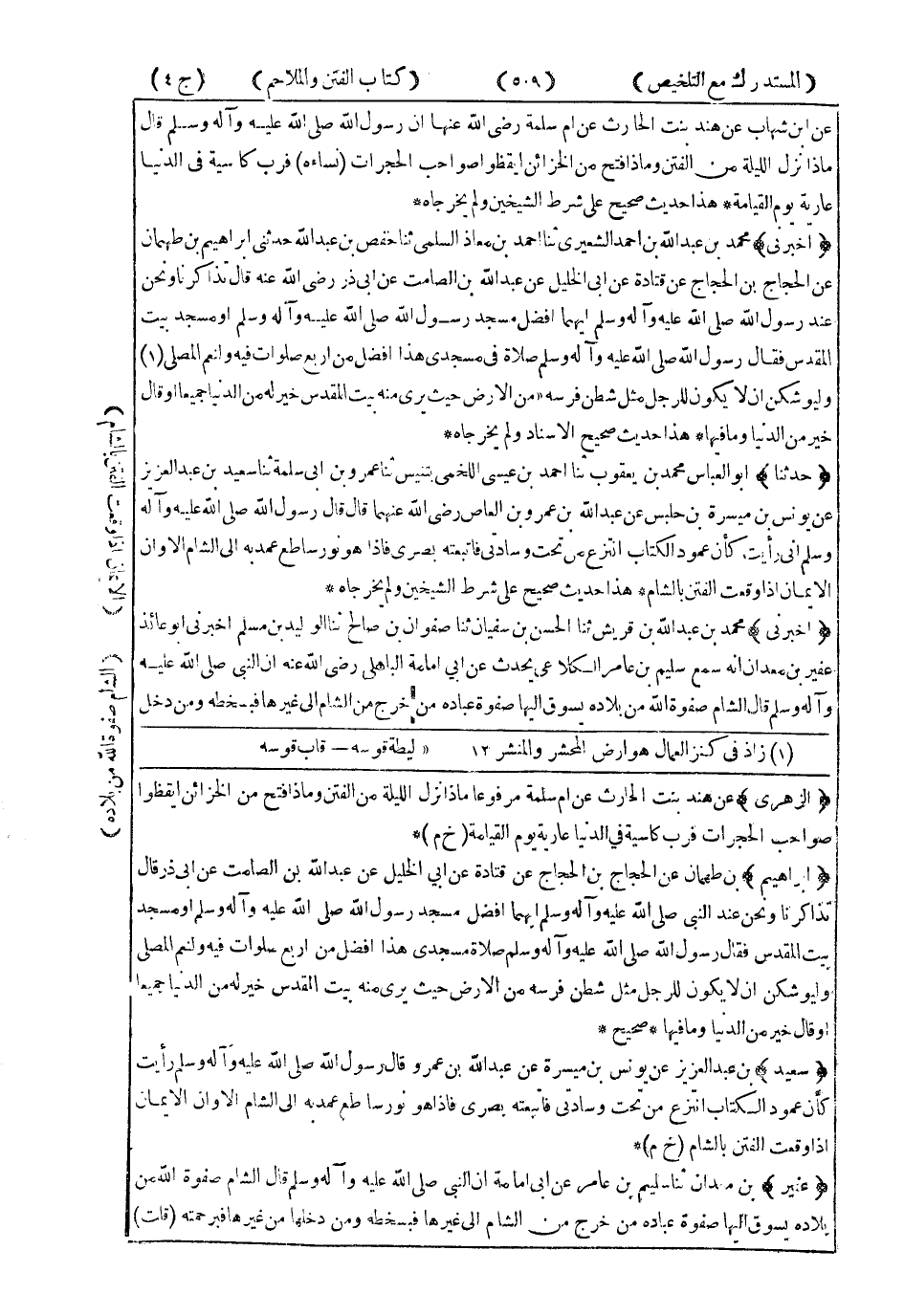 8554- حَدَّثَنَا أَبُو الْعَبَّاسِ مُحَمَّدُ بْنُ يَعْقُوبَ ، حَدَّثَنَا أَحْمَدُ بْنُ عِيسَى اللَّخْمِيُّ ، بِتِنِّيسَ ، حَدَّثَنَا عَمْرُو بْنُ أَبِي سَلَمَةَ ، حَدَّثَنَا سَعِيدُ بْنُ عَبْدِ الْعَزِيزِ ، عَنْ يُونُسَ بْنِ مَيْسَرَةَ بْنِ حَلْبَسَ ، عَنْ عَبْدِ اللهِ بْنِ عَمْرِو بْنِ الْعَاصِ رَضِيَ اللَّهُ عَنْهُمَا ، قَالَ : قَالَ رَسُولُ اللهِ صَلَّى اللَّهُ عَلَيْهِ وَسَلَّمَ : إِنِّي رَأَيْتُ كَأَنَّ عَمُودَ الْكِتَابِ انْتُزِعَ مِنْ تَحْتِ وِسَادَتِي ، فَأَتْبَعْتُهُ بَصَرِي فَإِذَا هُوَ نُورٌ سَاطِعٌ عُمِدَ بِهِ إِلَى الشَّامِ ، أَلاَ وَإِنَّ الإِيمَانَ إِذَا وَقَعَتِ الْفِتَنُ بِالشَّامِ.