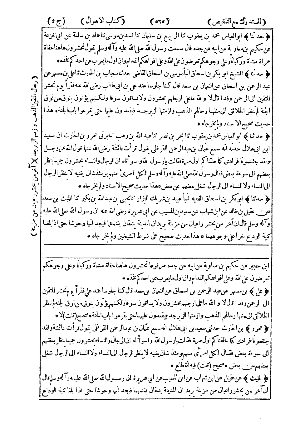 هَذَا حَدِيثٌ صَحِيحٌ عَلَى شَرْطِ الشَّيْخَيْنِ ، وَلَمْ يُخْرِجَاهُ.