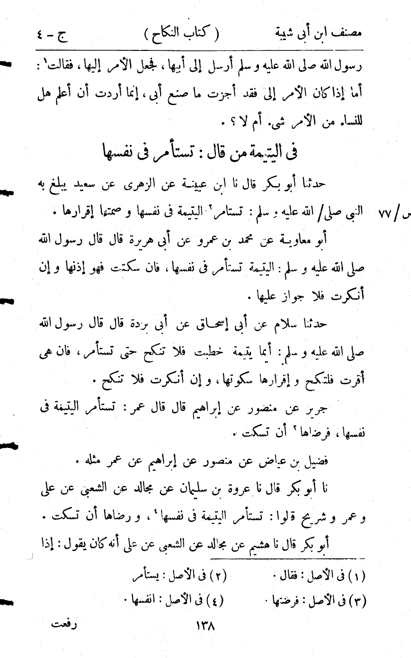 كتاب مصنف ابن أبي شيبة ط السلفية بالهند (اسم الجزء: 4)