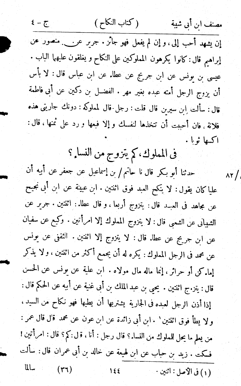 كتاب مصنف ابن أبي شيبة ط السلفية بالهند (اسم الجزء: 4)