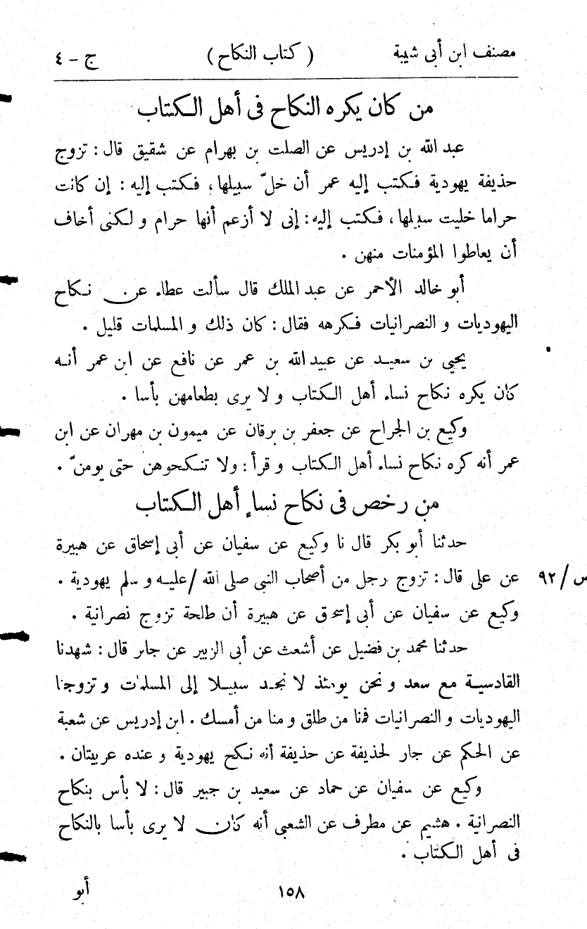 16422- حَدَّثَنَا وَكِيعٌ , عَنْ سُفْيَانَ , عَنْ أَبِي إِسْحَاقَ , عَنْ هُبَيْرَةَ أَنَّ طَلْحَةَ تَزَوَّجَ نَصْرَانِيَّةً.