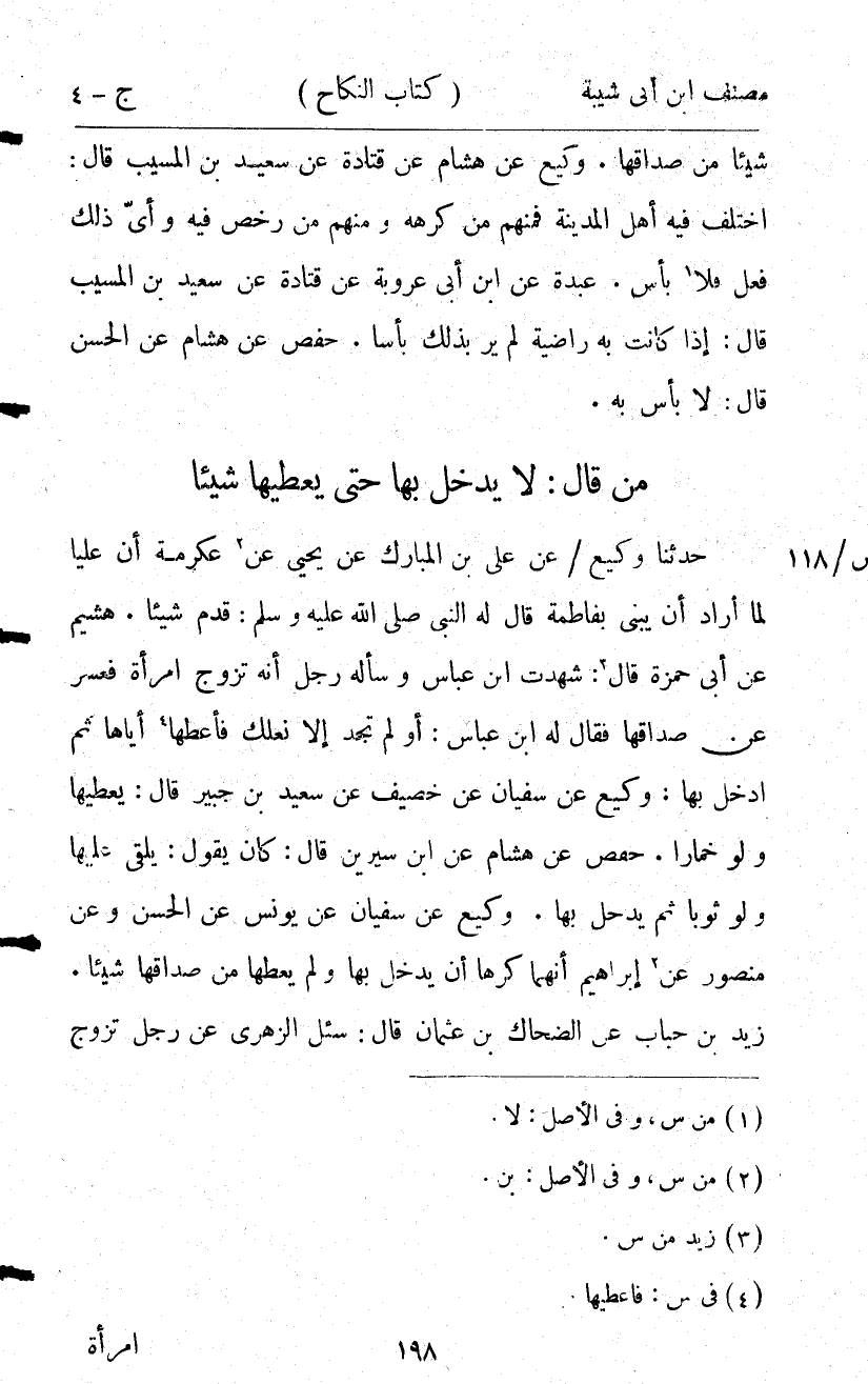 كتاب مصنف ابن أبي شيبة ط السلفية بالهند (اسم الجزء: 4)