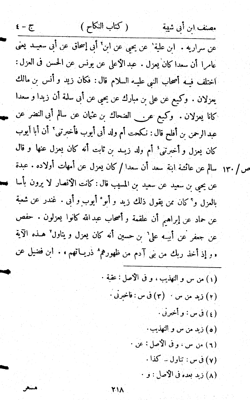 16849- حَدَّثَنَا عَبْدَة بن سليمان , عَنْ يَحْيَى بْنِ سَعِيدٍ , عَنْ سَعِيدِ بْنِ الْمُسَيَّبِ قَالَ : كَانَتِ الأَنْصَارُ لاَ يَرَوْنَ بَأْسًا بِالْعَزْلِ ، وَكَانَ مِمَّنْ يَقُولُ ذَلِكَ زَيْدٌ ، وَأَبُو أَيُّوبَ وَأُبَيُّ.
