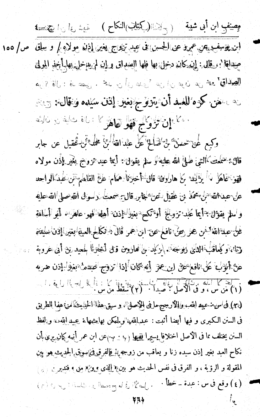 130- من كره لِلْعَبْدِ أَنْ يَتَزَوَّجَ بِغَيْرِ إذْنِ سَيِّدِهِ وَقَالَ : إِنْ تَزَوَّجَ فَهُوَ عَاهِرٌ.