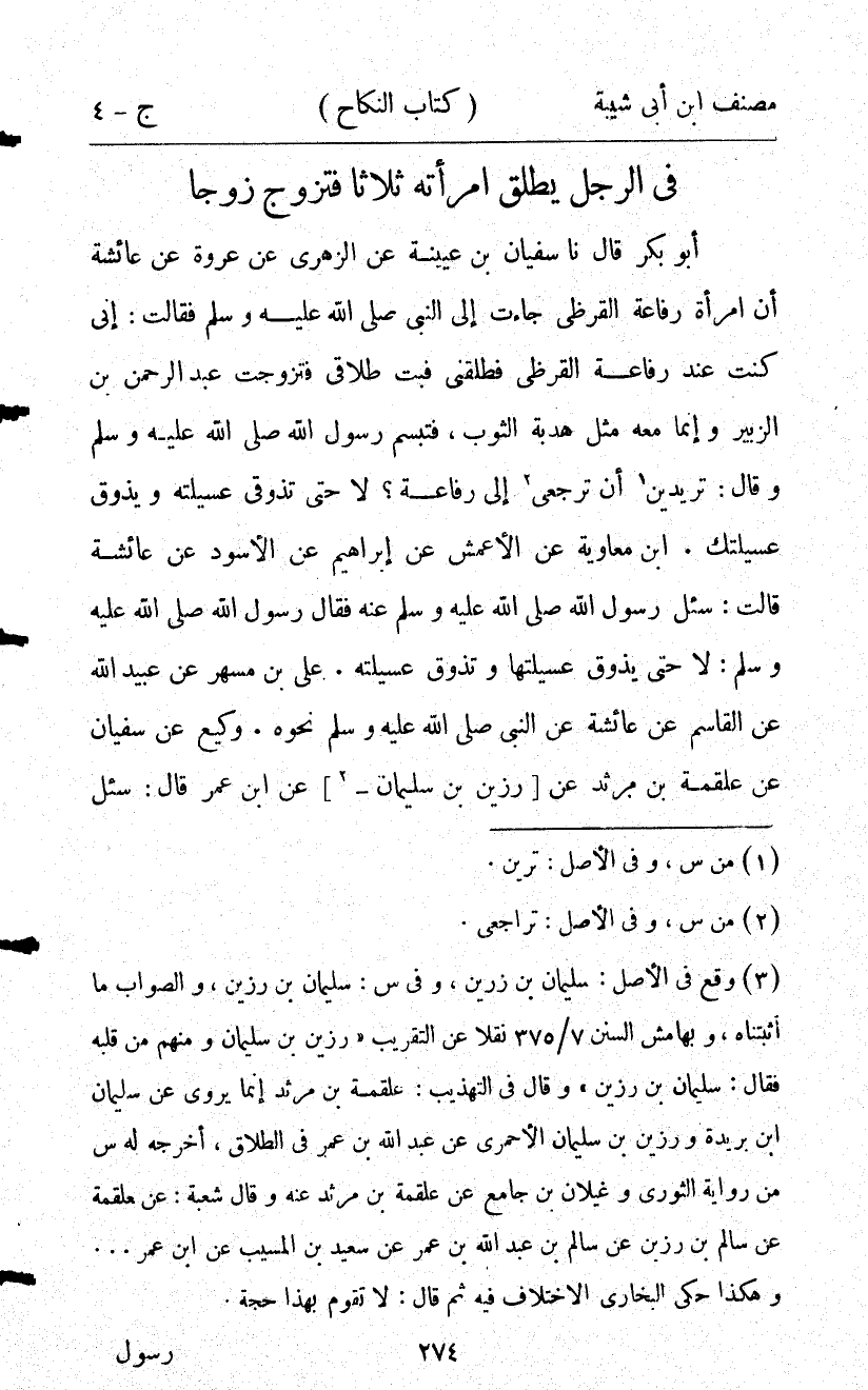 كتاب مصنف ابن أبي شيبة ط السلفية بالهند (اسم الجزء: 4)