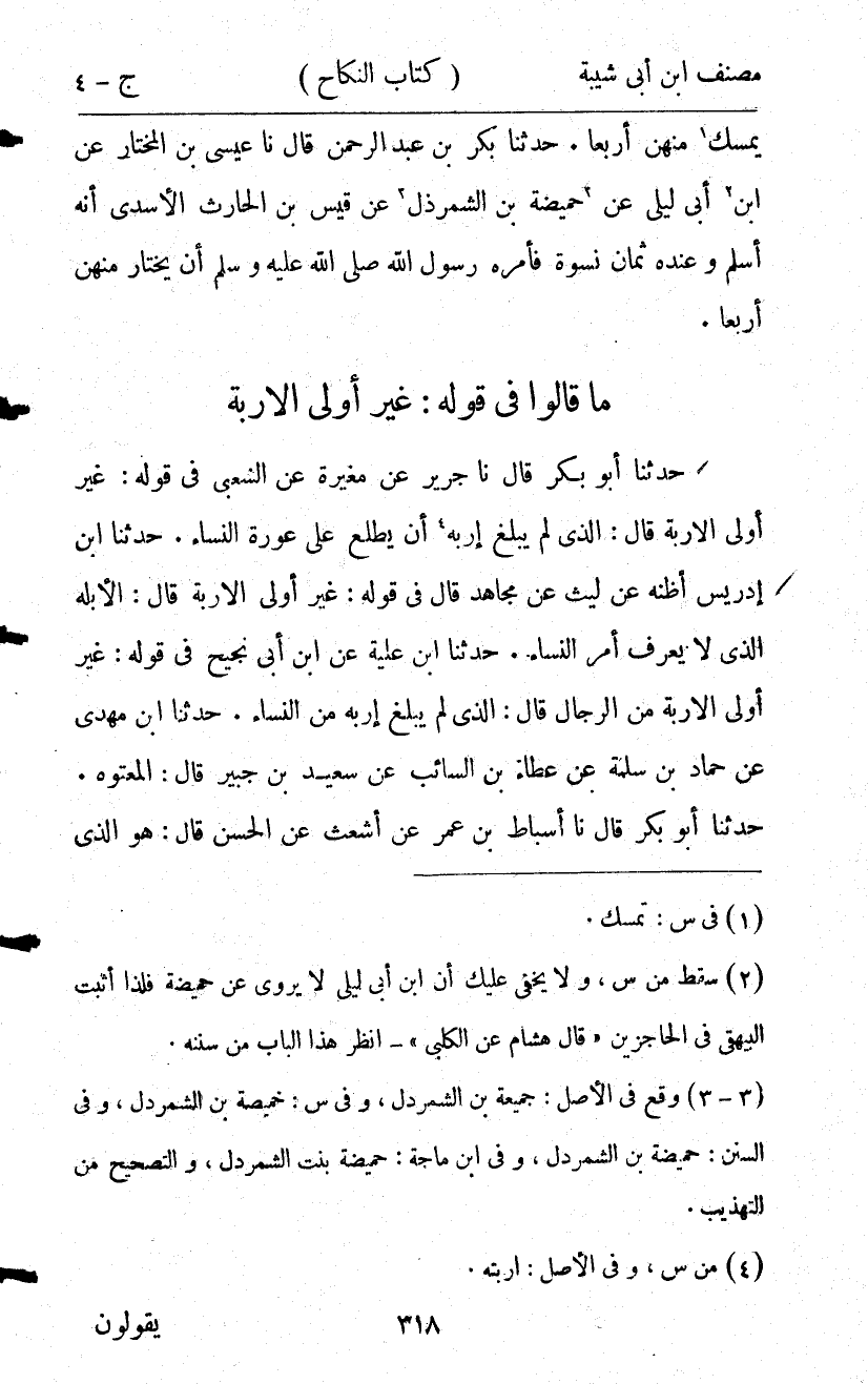كتاب مصنف ابن أبي شيبة ط السلفية بالهند (اسم الجزء: 4)