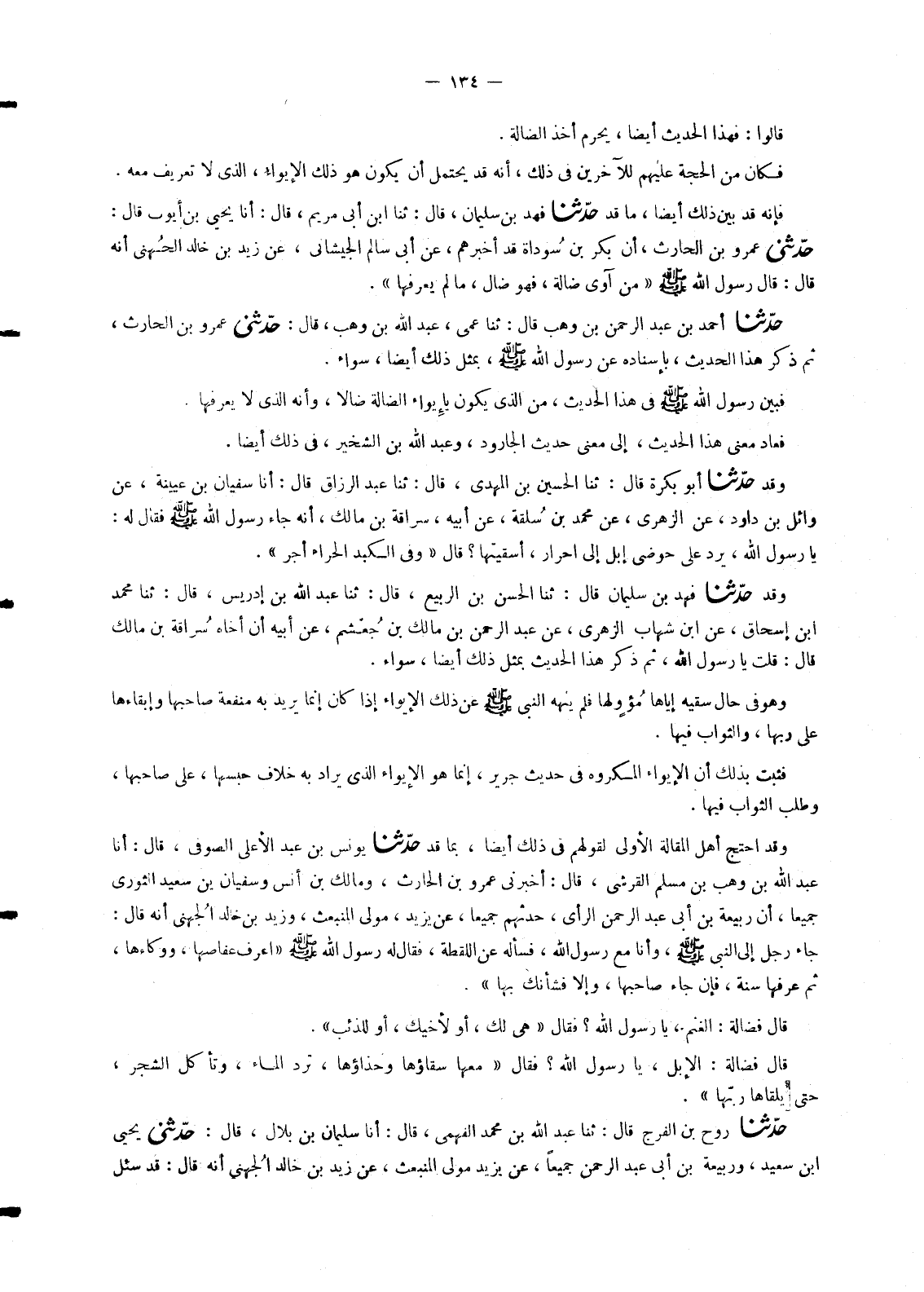 6063 - حَدَّثَنَا أَحْمَدُ بْنُ عَبْدِ الرَّحْمَنِ بْنِ وَهْبٍ قَالَ: ثنا عَمِّي عَبْدُ اللهِ بْنُ وَهْبٍ قَالَ: حَدَّثَنِي عَمْرُو بْنُ الْحَارِثِ ثُمَّ ذَكَرَ هَذَا الْحَدِيثَ بِإِسْنَادِهِ عَنْ رَسُولِ اللهِ صَلَّى اللَّهُ عَلَيْهِ وَسَلَّمَ بِمِثْلِ ذَلِكَ أَيْضًا سَوَاءً فَبَيَّنَ رَسُولُ اللهِ صَلَّى اللَّهُ عَلَيْهِ وَسَلَّمَ فِي هَذَا الْحَدِيثِ مَنِ الَّذِي يَكُونُ بِإِيوَاءِ الضَّالَّةِ ضَالًّا وَأَنَّهُ الَّذِي لَا يُعَرِّفُهَا. فَعَادَ مَعْنَى هَذَا الْحَدِيثِ إِلَى مَعْنَى حَدِيثِ الْجَارُودِ وَعَبْدِ اللهِ بْنُ الشِّخِّيرِ فِي ذَلِكَ أَيْضًا