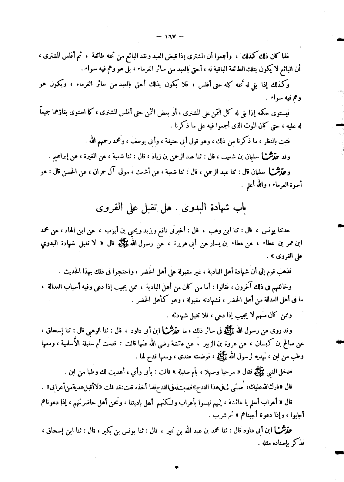 §بَابُ شَهَادَةِ الْبَدْوِيِّ. هَلْ تُقْبَلُ عَلَى الْقَرَوِيِّ