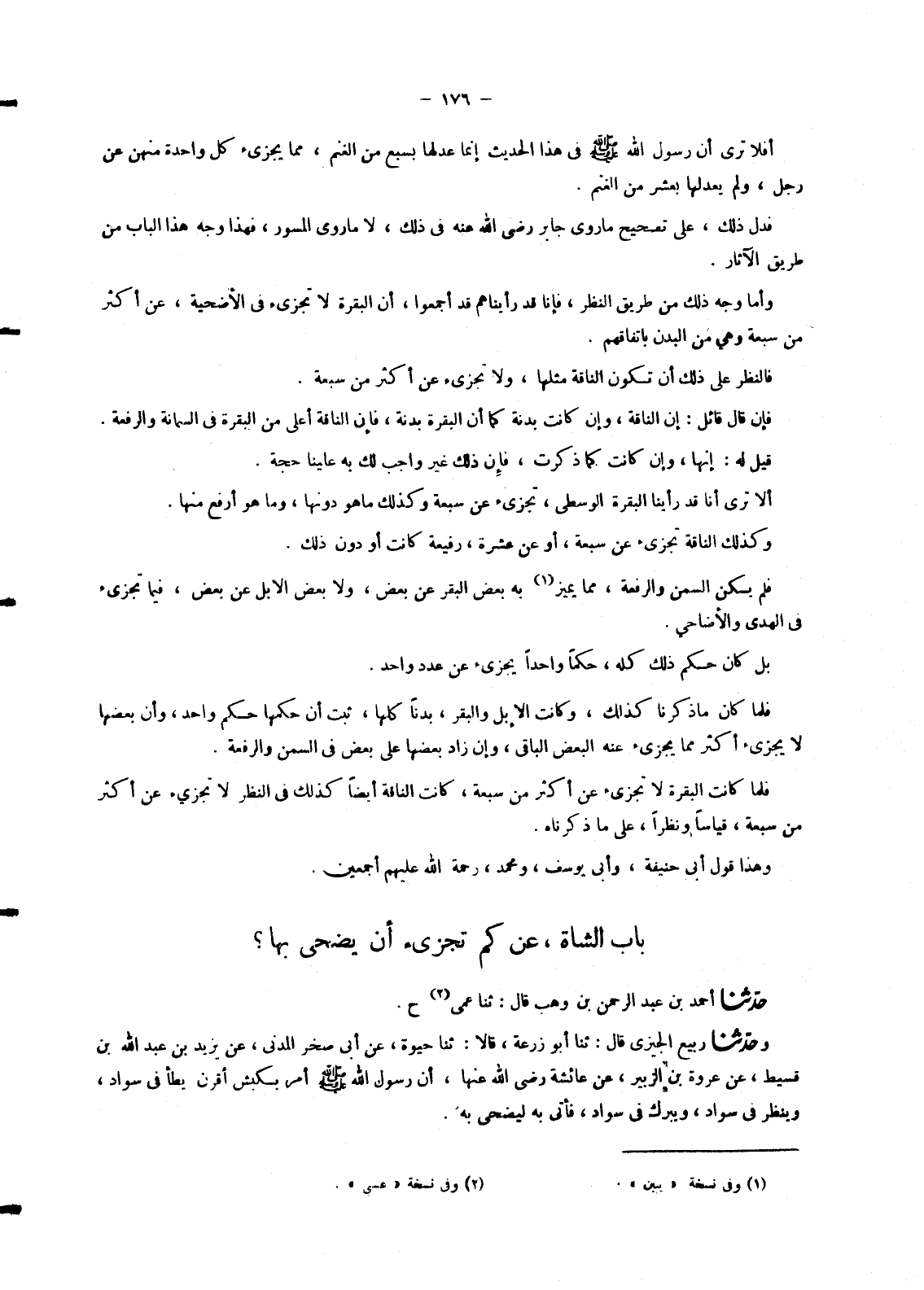 §بَابُ الشَّاةِ , عَنْ كَمْ تُجْزِئُ أَنْ يُضَحَّى بِهَا؟
