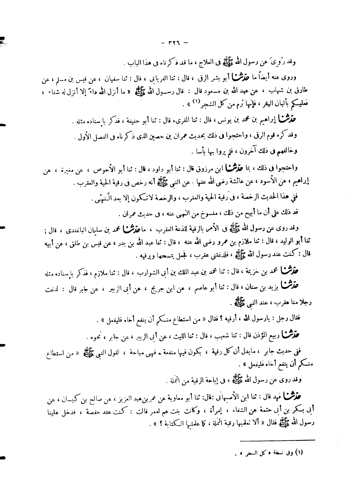 7177 - حَدَّثَنَا إِبْرَاهِيمُ بْنُ مُحَمَّدِ بْنِ يُونُسَ، قَالَ: ثنا الْمُقْرِئُ، قَالَ: ثنا أَبُو حَنِيفَةَ، فَذَكَرَ بِإِسْنَادِهِ مِثْلَهُ وَقَدْ كَرِهَ قَوْمٌ الرُّقَى , وَاحْتَجُّوا فِي ذَلِكَ بِحَدِيثِ عِمْرَانَ بْنِ حُصَيْنٍ الَّذِي ذَكَرْنَاهُ فِي الْفَصْلِ الْأَوَّلِ. وَخَالَفَهُمْ فِي ذَلِكَ آخَرُونَ , فَلَمْ يَرَوْا بِهَا بَأْسًا. وَاحْتَجُّوا فِي ذَلِكَ