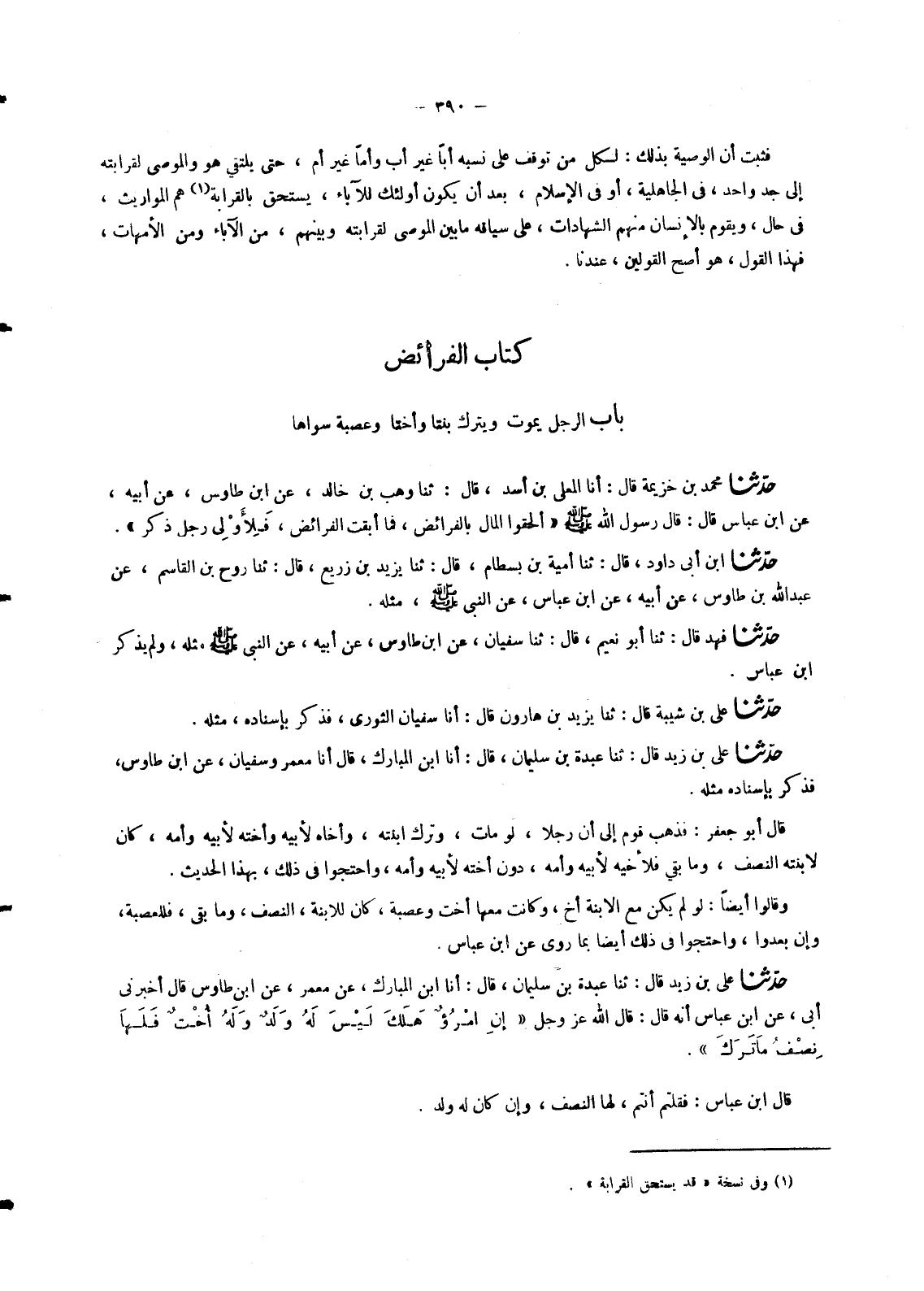 7402 - حَدَّثَنَا مُحَمَّدُ بْنُ خُزَيْمَةَ، قَالَ: أنا الْمُعَلَّى بْنُ أَسَدٍ، قَالَ: ثنا وَهْبُ بْنُ خَالِدٍ، عَنِ ابْنِ طَاوُسٍ، عَنْ أَبِيهِ، عَنِ ابْنِ عَبَّاسٍ، قَالَ: قَالَ رَسُولُ اللهِ صَلَّى اللَّهُ عَلَيْهِ وَسَلَّمَ: «§أَلْحِقُوا الْمَالَ بِالْفَرَائِضِ , فَمَا أَبْقَتِ الْفَرَائِضُ , فَلِأَوْلَى رَجُلٍ ذَكَرٍ»