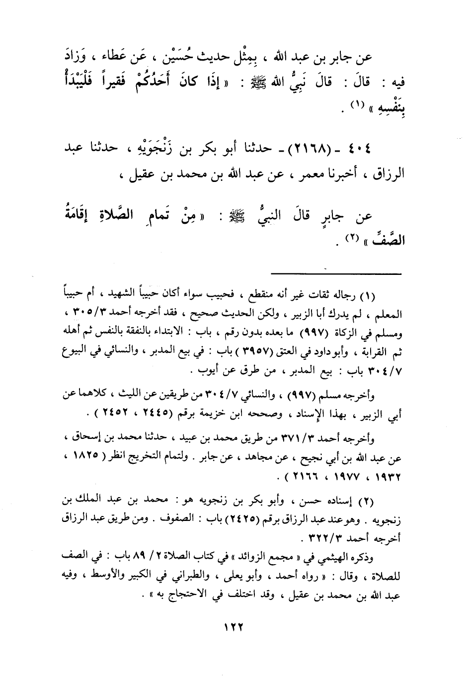 2168 - حَدَّثَنَا أَبُو بَكْرِ بْنُ زَنْجُوَيْهِ، حَدَّثَنَا عَبْدُ الرَّزَّاقِ، أَخْبَرَنَا مَعْمَرٌ، عَنْ عَبْدِ اللَّهِ بْنِ مُحَمَّدِ بْنِ عَقِيلٍ، عَنْ جَابِرٍ، قَالَ النَّبِيُّ صَلَّى اللهُ عَلَيْهِ وَسَلَّمَ: «§مِنْ تَمَامِ الصَّلَاةِ إِقَامَةُ الصَّفِّ» Kإسناده حسن
