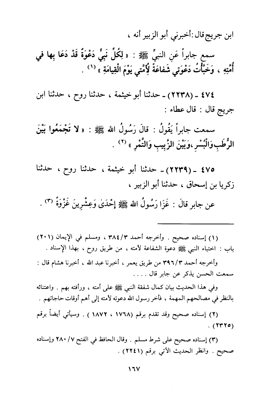 2239 - حَدَّثَنَا أَبُو خَيْثَمَةَ، حَدَّثَنَا رَوْحٌ، حَدَّثَنَا زَكَرِيَّا بْنُ إِسْحَاقَ، حَدَّثَنَا أَبُو الزُّبَيْرِ، عَنْ جَابِرٍ، قَالَ: «§غَزَا رَسُولُ اللَّهِ صَلَّى اللهُ عَلَيْهِ وَسَلَّمَ إِحْدَى وَعِشْرِينَ غَزْوَةً» Kإسناده صحيح على شرط مسلم
