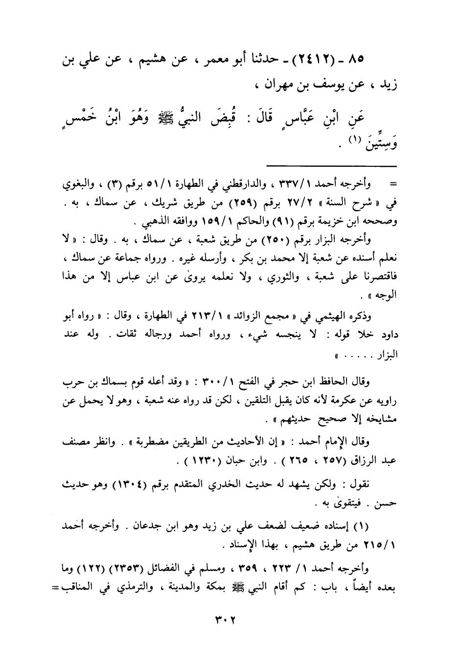 2412 - حَدَّثَنَا أَبُو مَعْمَرٍ، عَنْ هُشَيْمٍ، عَنْ عَلِيِّ بْنِ زَيْدٍ، عَنْ يُوسُفَ بْنِ مِهْرَانَ، عَنِ ابْنِ عَبَّاسٍ قَالَ: «§قُبِضَ النَّبِيُّ صَلَّى اللهُ عَلَيْهِ وَسَلَّمَ وَهُوَ ابْنُ خَمْسٍ وَسِتِّينَ» Kإسناده ضعيف