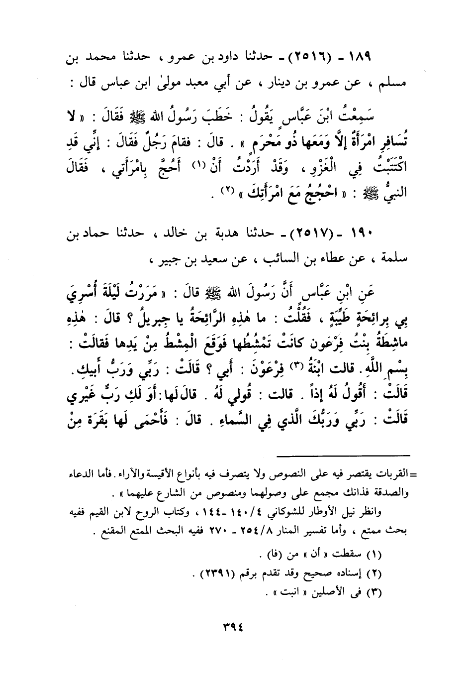 2516 - حَدَّثَنَا دَاوُدُ بْنُ عَمْرٍو، حَدَّثَنَا مُحَمَّدُ بْنُ مُسْلِمٍ، عَنْ عَمْرِو بْنِ دِينَارٍ، عَنْ أَبِي مَعْبَدٍ، مَوْلَى ابْنِ عَبَّاسٍ قَالَ: سَمِعْتُ ابْنَ عَبَّاسٍ يَقُولُ: خَطَبَ رَسُولُ اللَّهِ صَلَّى اللهُ عَلَيْهِ وَسَلَّمَ فَقَالَ: «§لَا تُسَافِرِ امْرَأَةٌ إِلَّا وَمَعَهَا ذُو مَحْرَمٍ». قَالَ: فَقَامَ رَجُلٌ فَقَالَ: إِنِّي قَدِ اكْتُتِبْتُ فِي الْغَزْوِ، وَقَدْ أَرَدْتُ أَنْ أَحُجَّ بِامْرَأَتِي، فَقَالَ النَّبِيُّ صَلَّى اللهُ عَلَيْهِ وَسَلَّمَ: «احْجُجْ مَعَ امْرَأَتِكَ» Kإسناده صحيح