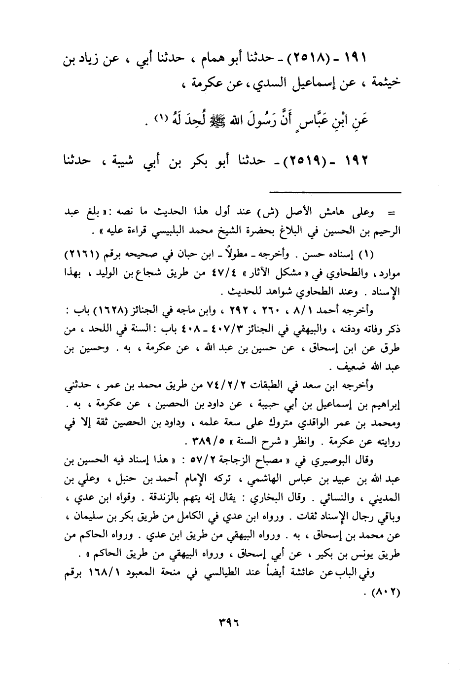 2518 - حَدَّثَنَا أَبُو هَمَّامٍ، حَدَّثَنَا أَبِي، عَنْ زِيَادِ بْنِ خَيْثَمَةَ، عَنْ إِسْمَاعِيلَ السُّدِّيِّ، عَنْ عِكْرِمَةَ، عَنِ ابْنِ عَبَّاسٍ، §أَنَّ رَسُولَ اللَّهِ صَلَّى اللهُ عَلَيْهِ وَسَلَّمَ لُحِدَ لَهُKإسناده حسن