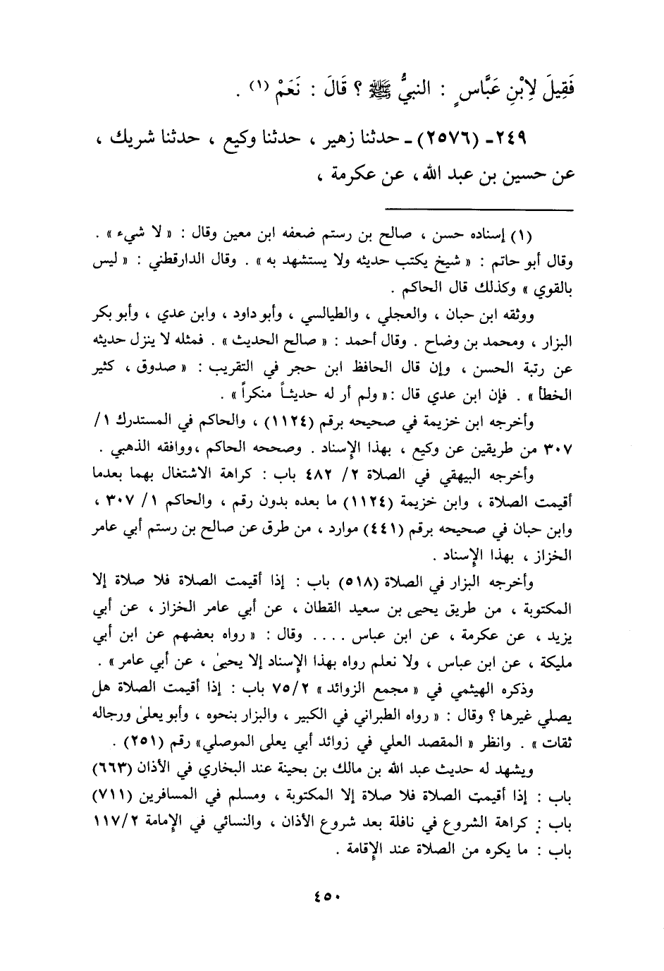 2576 - حَدَّثَنَا زُهَيْرٌ، حَدَّثَنَا وَكِيعٌ، حَدَّثَنَا شَرِيكٌ، عَنْ حُسَيْنِ بْنِ عَبْدِ اللَّهِ، عَنْ عِكْرِمَةَ، عَنِ ابْنِ عَبَّاسٍ أَنَّ رَسُولَ اللَّهِ صَلَّى اللهُ عَلَيْهِ وَسَلَّمَ «§صَلَّى فِي كِسَاءٍ يَتَّقِي بِفُضُولِهِ حَرَّ الْأَرْضِ وَبَرْدَهَا» Kإسناده ضعيف