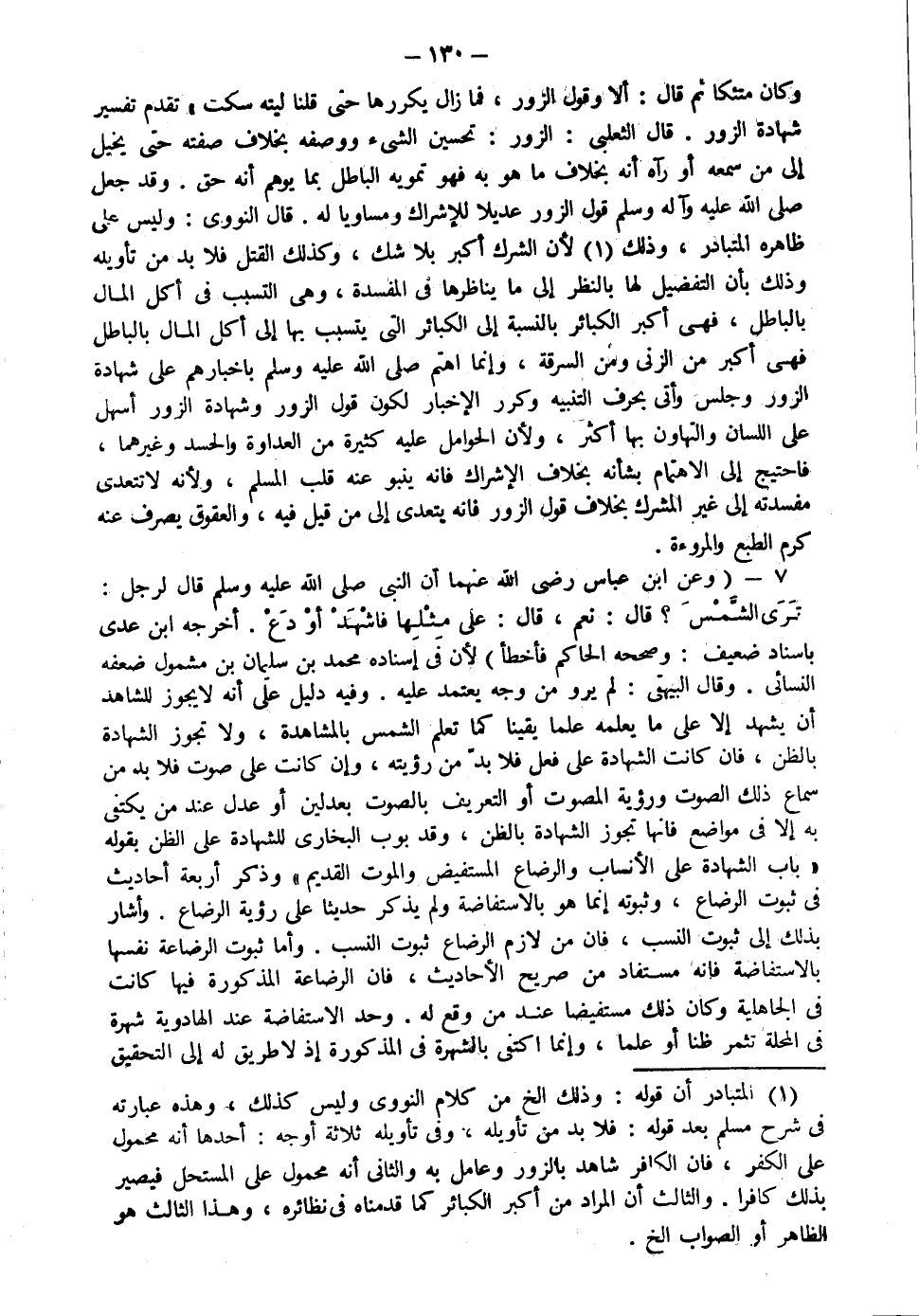 وكان متكئا ثم قال: "ألا وقول الزور" فما زال يكررها حتى قلنا ليته سكت تقدم تفسير شهادة الزور قال الثعلبي: الزور تحسين الشيء ووصفه بخلاف صفته حتى يخيل إلى من سمعه أو رآه بخلاف ما هو به فهو تمويه الباطل بما يوهم أنه حق وقد جعل صلى الله عليه وآله سلم قول الزور عديلا للإشراك ومساويا له قال النووي وليس على ظاهره المتبادر وذلك لأن الشرك أكبر بلا شك وكذلك القتل فلا بد من تأويله وذلك بأن التفضيل لها بالنظر إلى ما يناظرها في المفسدة وهي التسبب في أكل المال بالباطل فهي أكبر الكبائر بالنسبة إلى الكبائر التي يتسبب بها إلى أكل المال بالباطل فهي أكبر من الزنا ومن السرقة وإنما اهتم صلى الله عليه وسلم بإخبارهم عن شهادة الزور وجلس وأتى بحرف التنبيه وكرر الإخبار لكون قول الزور وشهادة الزور أسهل على اللسان والتهاون بها أكثر ولأن الحوامل عليه كثيرة من العداوة والحسد وغيرها فاحتيج إلى الاهتمام بشأنه بخلاف الإشراك فإنه ينبو عنه قلب المسلم ولأنه لا تتعدى مفسدته ألى غير المشرك بخلاف قول الزور فإنه يتعدى إلى من قيل فيه والعقوق يصرف عنه كرم الطبع والمروءة