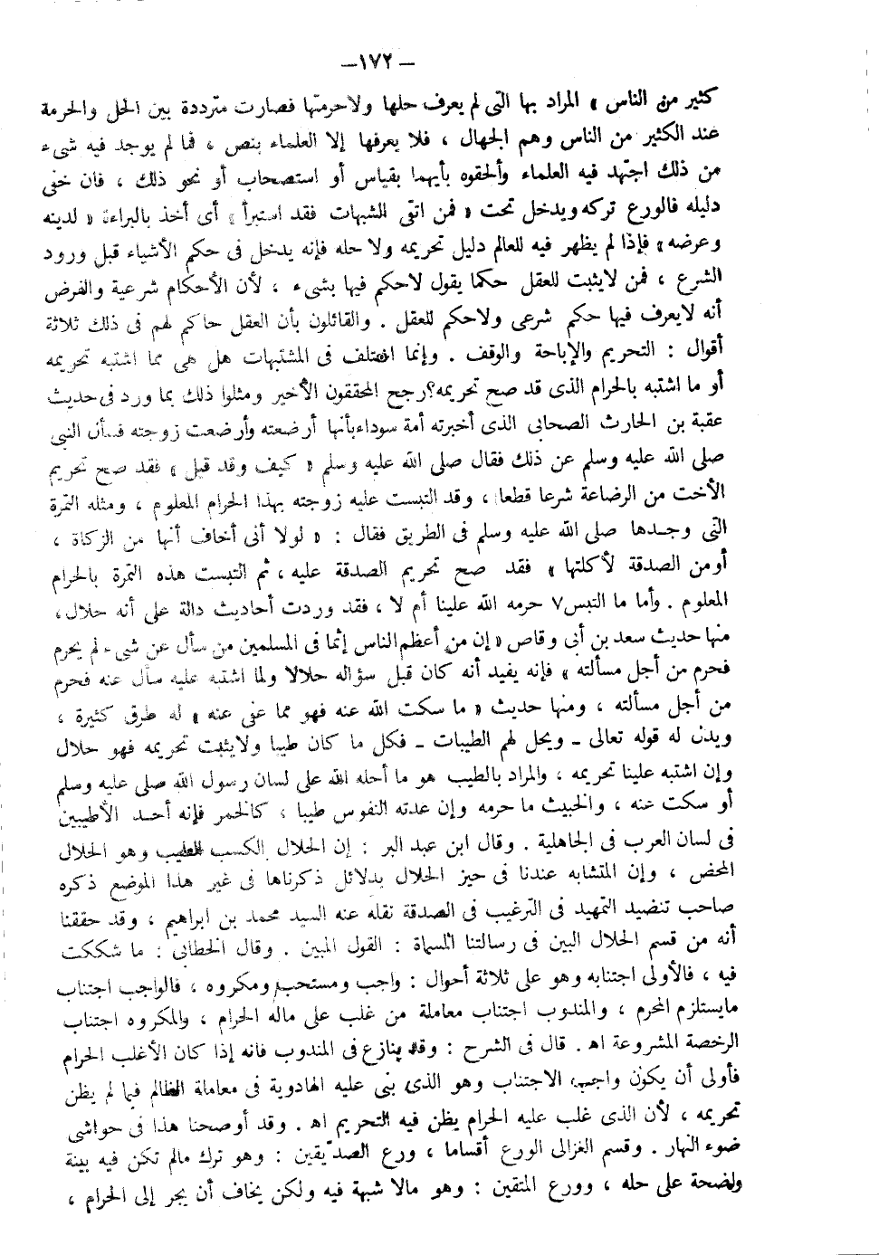 كثير من الناس المراد بها التي لم يعرف حلها ولا حرمتها فصارت مترددة بين الحل والحرمة الكثير من الناس وهم الجهال فلا يعرفها إلا العلماء بنص فما لم يوجد فيه شيء من ذلك اجتهد فيه العلماء وألحقوه بأيهما بقياس أو استصحاب أو نحو ذلك فإن خفي دليله فالورع تركه ويدخل تحت فمن اتقى الشبهات فقد استبرأ أي أخذ بالبراءة لدينه وعرضه فإذا لم يظهر فيه للعالم ولا حله فإنه يدخل في حكم الأشياء قبل ورود الشرع فمن لا يثبت للعقل حكما يقول لا حكم فيها بشيء لأن الأحكام شرعية والفرض أنه لا يعرف فيها حكم شرعي ولا حكم للعقل والقائلون بأن العقل حاكم لهم في ذلك ثلاثة أقوال التحريم والإباحة والوقف وإنما اختلف في المشتبهات هل هي مما اشتبه تحريمه أو ما أشتبه بالحرام الذي قد صح تحريمه رجح المحققون الأخير ومثلوا ذلك بما ورد في حديث عقبة بن الحارث الصحابي الذي أخبرته أمة سوداء بأنها أرضعته وأرضعت زوجته فسأل النبي صلى الله عليه وسلم عن ذلك فقال صلى الله عليه سلم كيف وقد قيل فقد صح تحريم الأخت من الرضاعة شرعا قطعا وقد التبست عليه زوجته بهذا الحرام المعلوم ومثله التمرة التي وجدها صلى الله عليه وسلم في الطريق فقال "لولا أني أخاف أنها من الزكاة أو من الصدقة لأكلتها" فقد صح تحريم الصدقة عليه ثم التبست هذه التمرة بالحرام المعلوم وأما ما التبس هل حرمه الله علينا أم لا فقد وردت أحاديث دالة على أنه حلال منها حديث سعد بن أبي وقاص إن من أعظم الناس إثما في المسلمين من سأل عن شيء لم يحرم فحرم من أجل مسألته فإنه يفيد أنه كان قبل سؤاله حلالا ولما اشتبه عليه سأل عنه فحرم من أجل مسألته ومنها حديث "ما سكت الله عنه فهو مما عفى عنه" له طرق كثيرة ويدل له قوله تعالى {ويحل لهم الطيبات} فكل ما كان طيبا ولا يثبت تحريمه فهو حلال وإن اشتبه علينا تحريمه والمراد بالطيب هو ما أحله الله على لسان رسول الله صلى الله عليه سلم أو سكت عنه والخبيث ما حرمه وإن عدته النفوس طيبا كالخمر فإنه أحد الأطيبين في لسان العرب في الجاهلية وقال ابن عبد البر إن الحلال الكسب الطيب وهو الحلال المحض وإن المتشابه عندنا في حيز الحلال بدلائل ذكرناها في غير هذا الموضع ذكره صاحب تنضيد التمهيد في الترغيب في الصدقة نقله عن السيد محمد بن إبراهيم وقد حققنا أنه من قسم الحلال البين في رسالتنا المسماة القول المبين وقال الخطابي: ما شككت فيه فالأولى اجتنابه وهو على ثلاثة أحوال واجب ومستحب ومكروه فالواجب اجتناب ما يستلزم المحرم والمندوب اجتناب معاملة من غلب على ماله الحرام والمكروه اجتناب الرخصة المشروعة ا ه قال في الشرح وقد ينازع في المندوب فإنه إذا كان الأغلب الحرام فأولى أن يكون واجب الاجتناب وهو الذي بني عليه الهادوية في معاملة الظالم فيما لم يظن تحريمه لأن الذي غلب عليه الحرام يظن فيه التحريم ا ه وقد أوضحنا هذا في حواشي ضوء النهار وقسم الغزالي الورع أقساما ورع الصديقين وهو ترك ما لم تكن فيه بينة واضحة على حله وورع المتقين وهو ما لا شبهة فيه ولكن يخاف أن يجر إلى الحرام